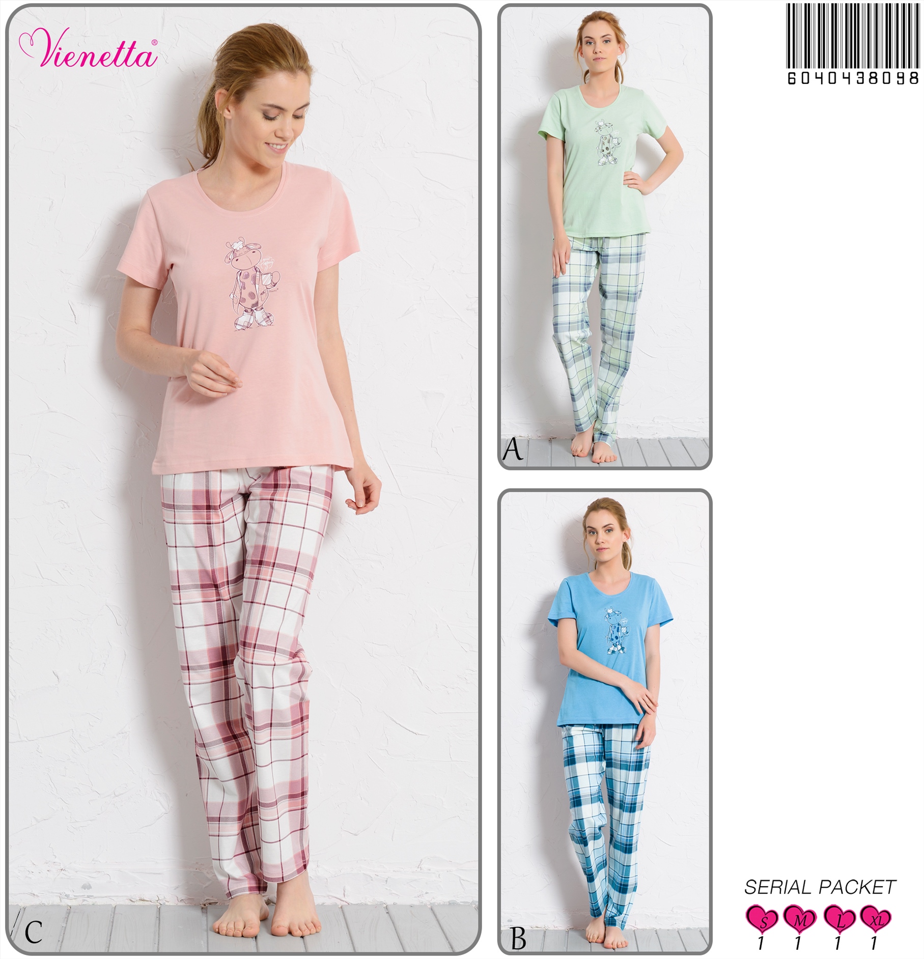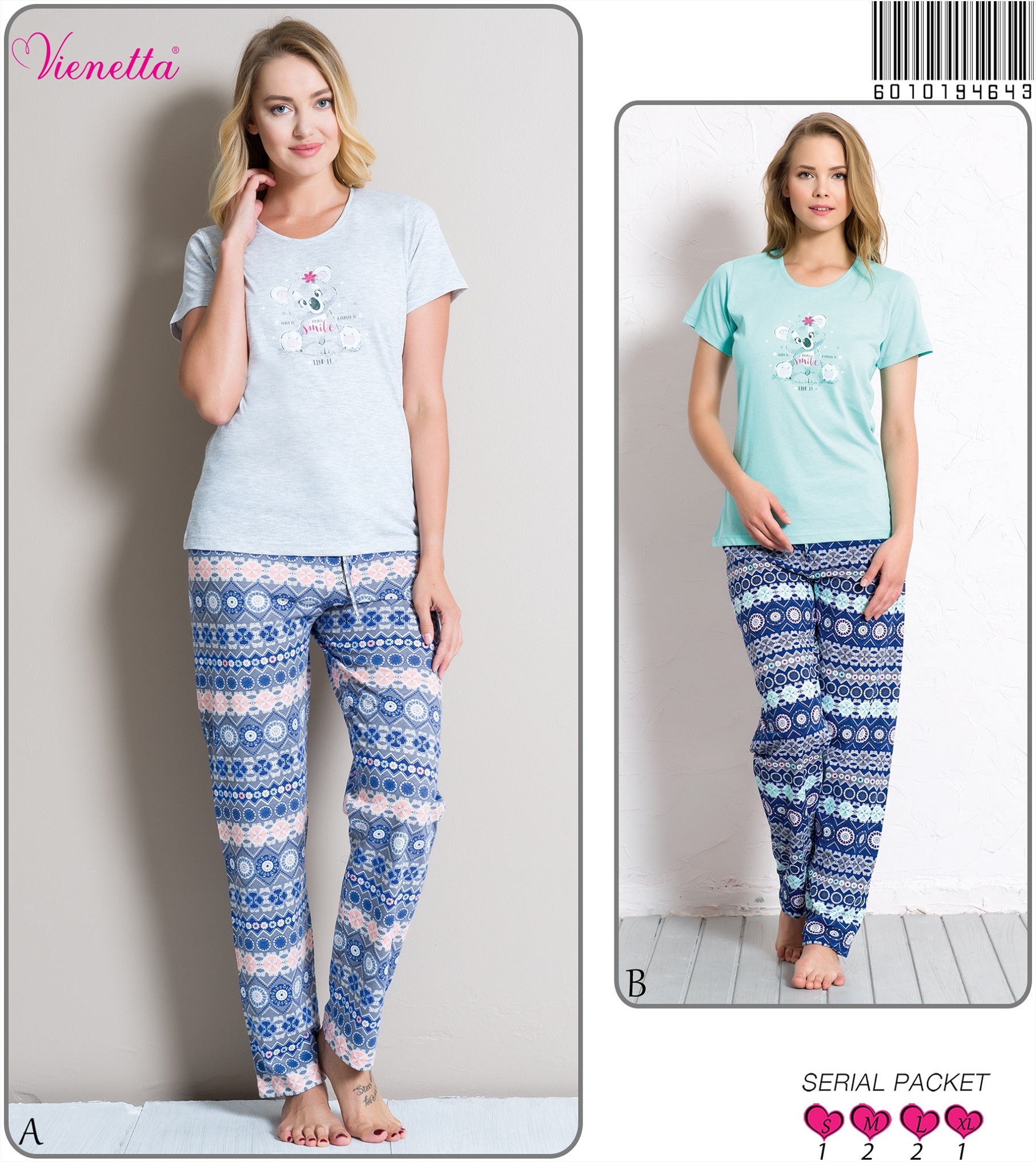 KADIN P.SÜPREM O YAKA KISA.KOL PİJAMA TAKIM 6040438098 A A/ 1-1-1-1 5,60 $ 2,00 44,80 $