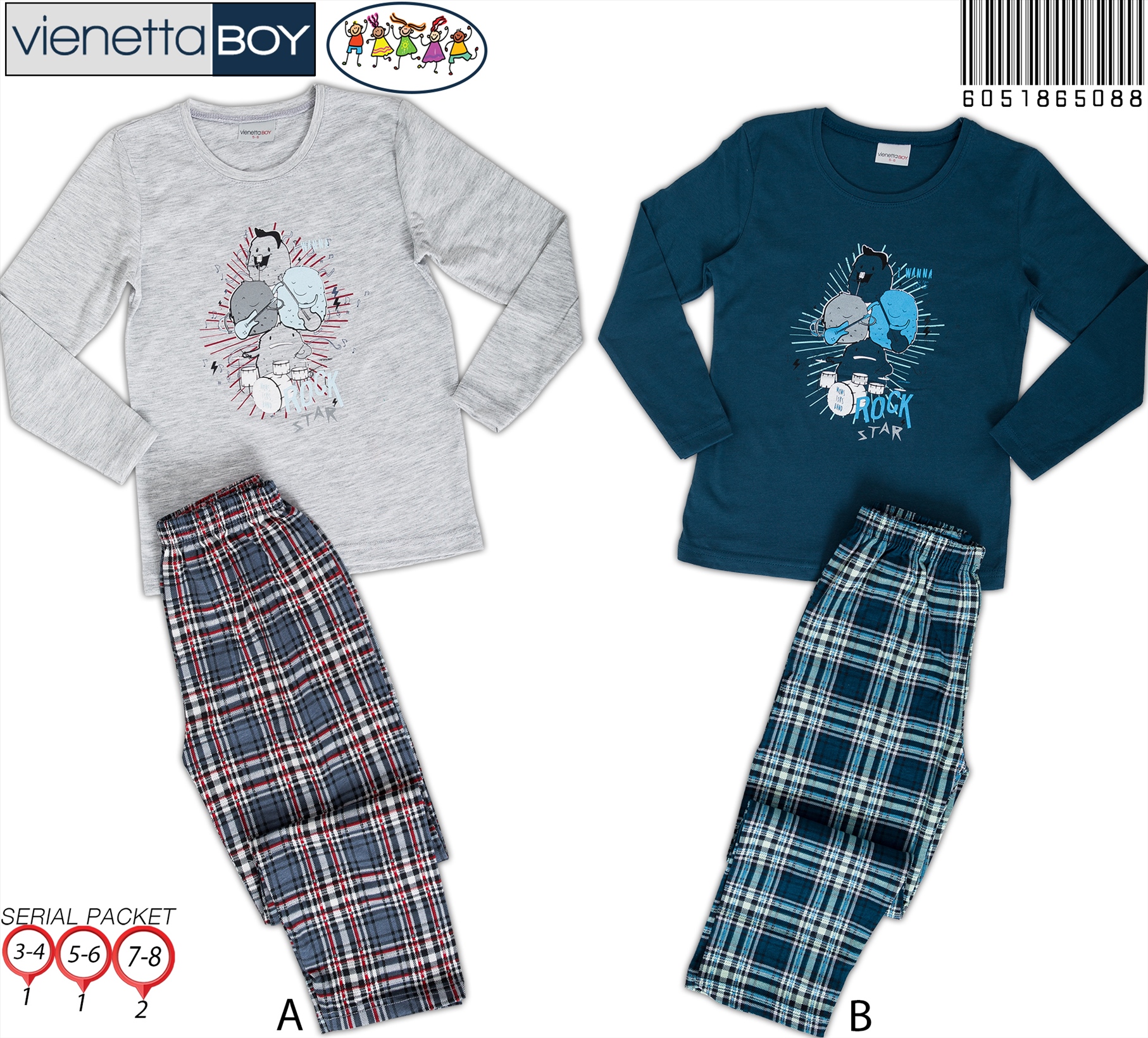 ERKEK COCUK O YAKA UZUN KOL PIJAMA TAKIM 6051865088 A A/ 1-1-2 4,00 $ 8,00 128,00 $