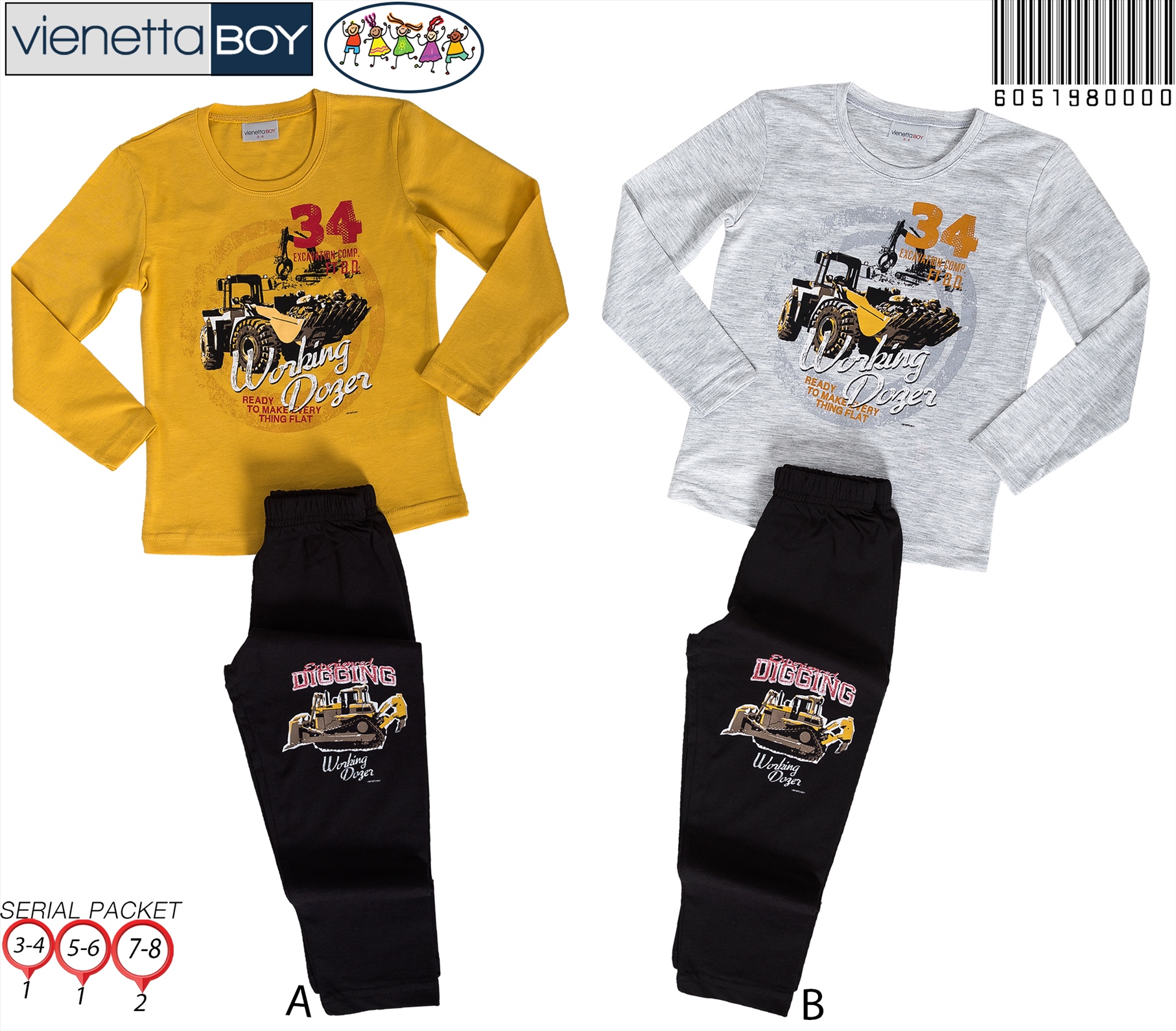 ERKEK COCUK O YAKA UZUN KOL PIJAMA TAKIM 6051980000 B A/ 1-1-2 4,10 $ 37,00 606,80 $