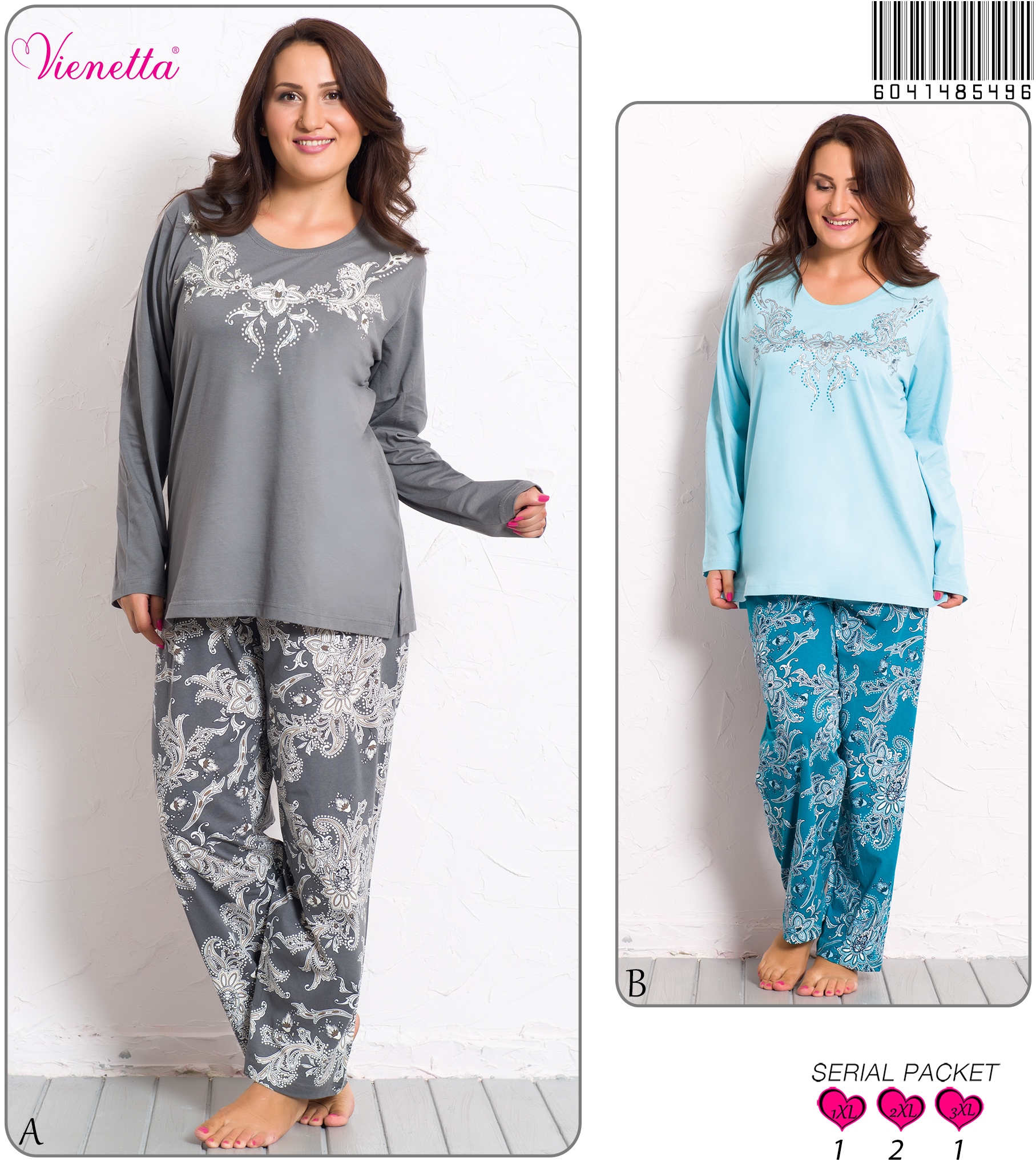 KADIN P.SUPREM XXLI O YAKA U.KOL PIJAMA TAKI 6041663368 A A/ 2-1-1 7,30 $ 5,00 146,00 $