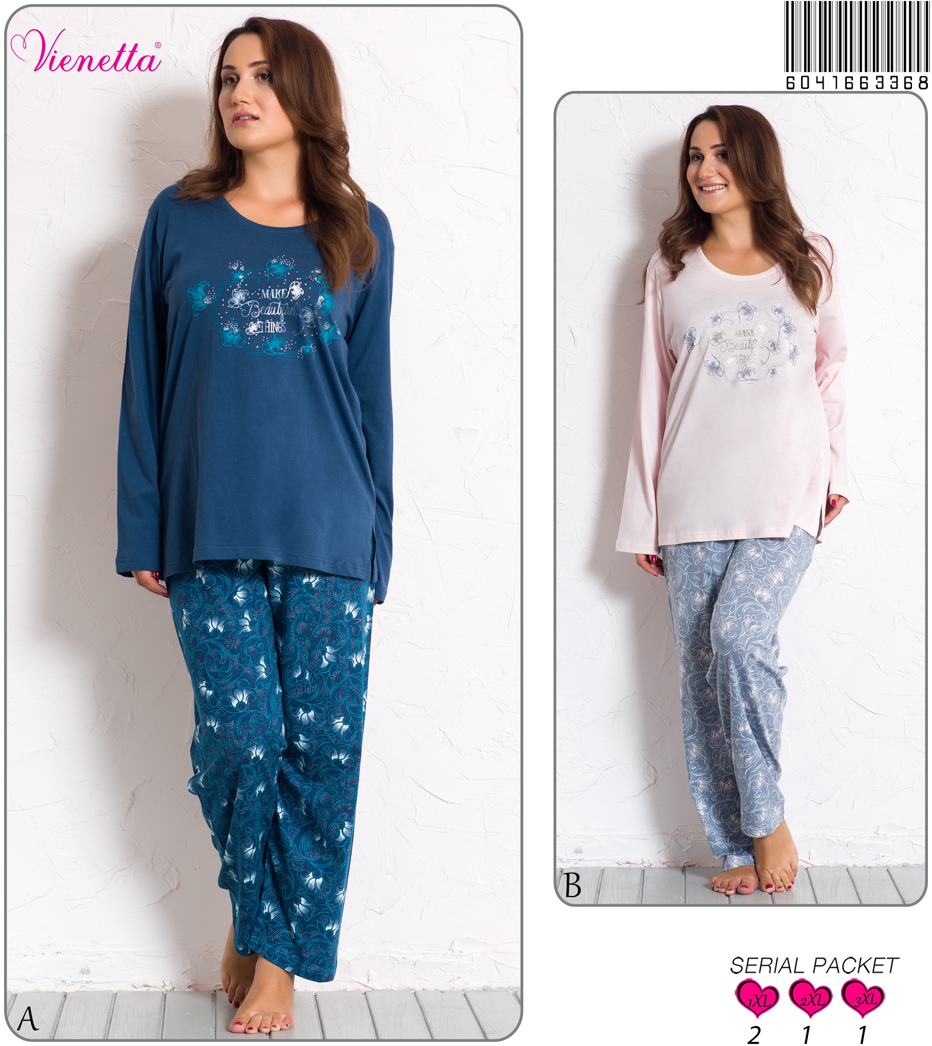 KADIN P.SUPREM XXLI O YAKA U.KOL PIJAMA TAKI 6041663368 B A/ 2-1-1 7,30 $ 5,00 146,00 $
