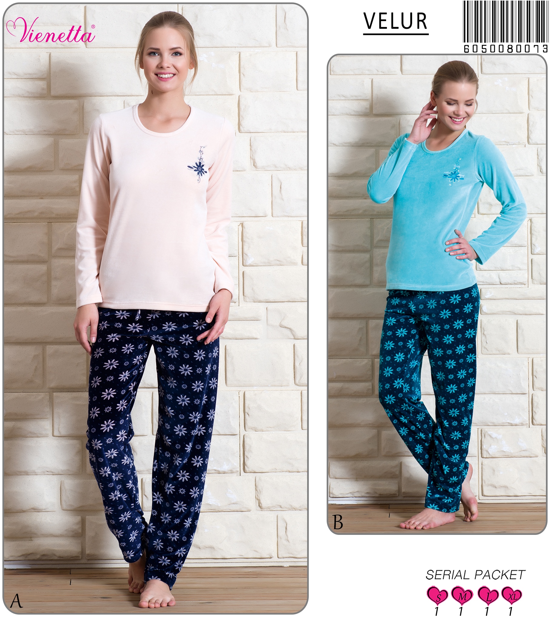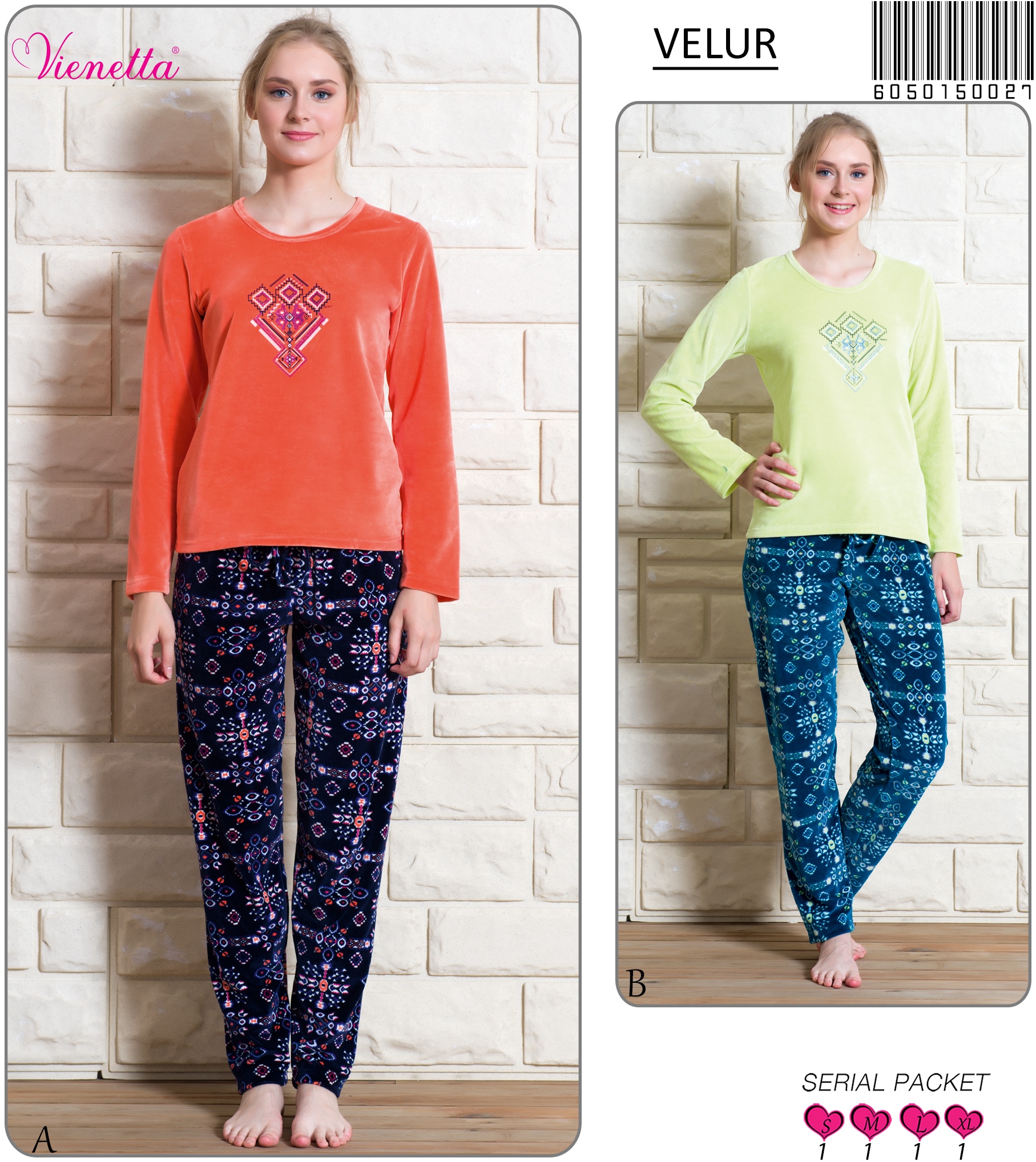 KADIN KADIFE O YAKA U.KOL PİJAMA TAKIM 6050150027 B A/ 1-1-1-1 11,10 $ 5,00 222,00 $