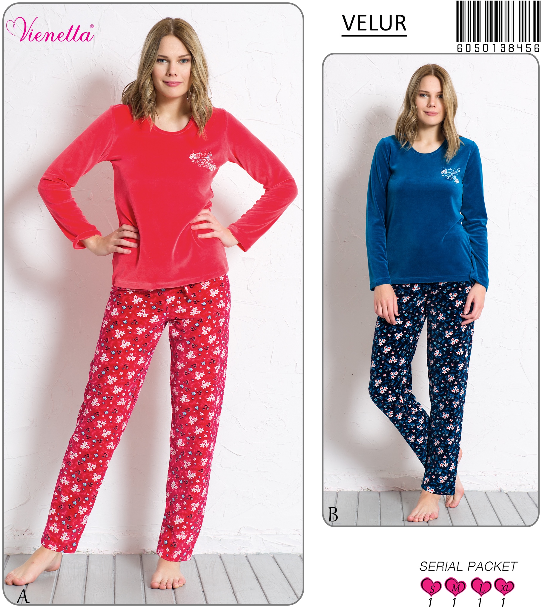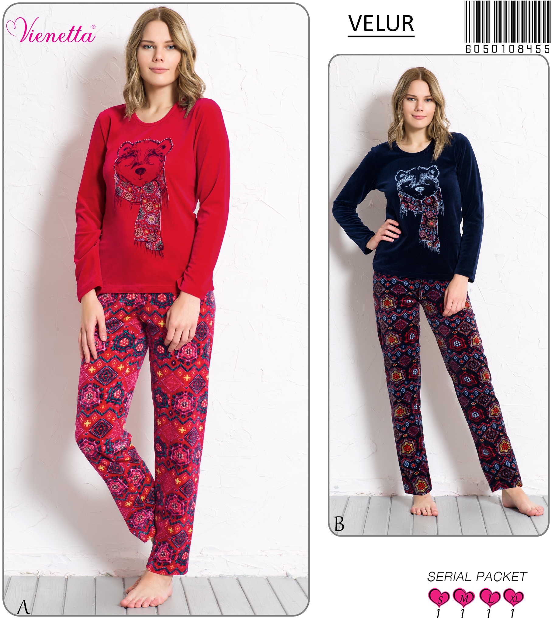KADIN KADIFE O YAKA U.KOL PİJAMA TAKIM 6050138456 B A/ 1-1-1-1 11,10 $ 5,00 222,00 $