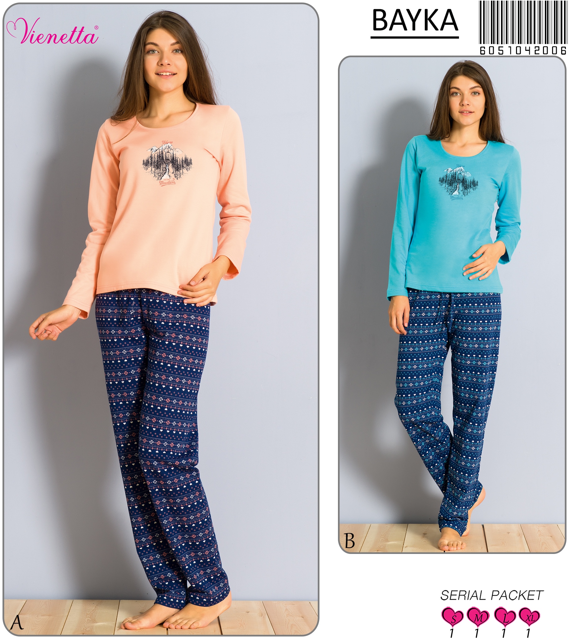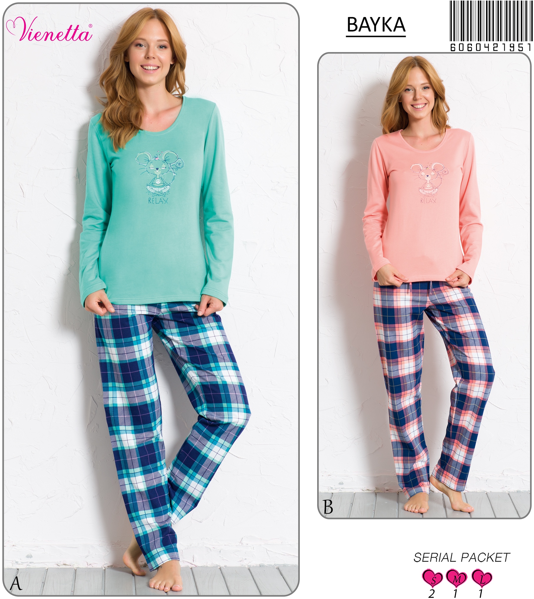 KADIN 2IPLIK O YAKA U.KOL PIJAMA TAKIM |