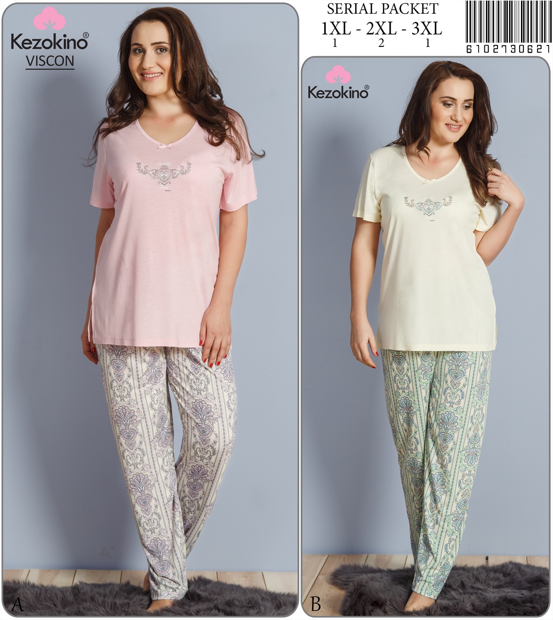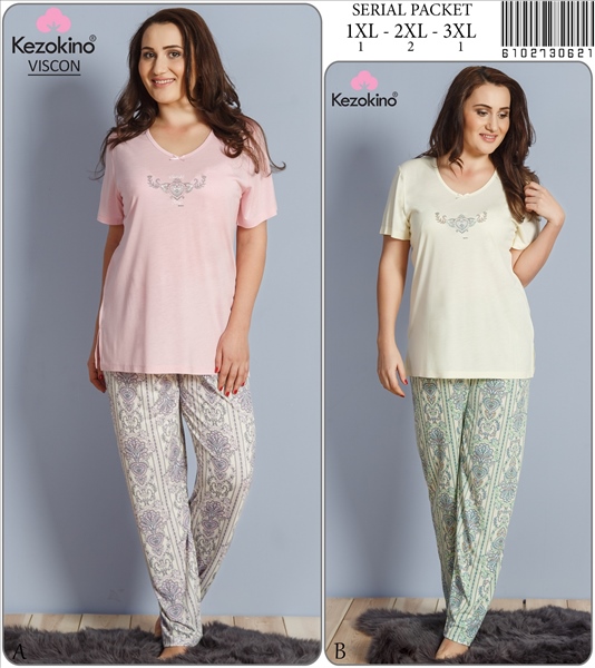 Stok Adı : KEZ - BAYAN VISCON XXLI V YAKALI FIYONKLU KISA KOL PIJAMA TAKIM