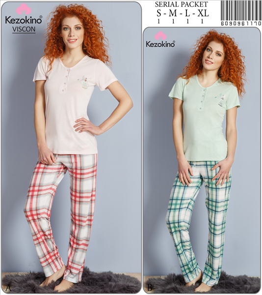 Stok Adı : KEZ - BAYAN VISCON YARMA PATLI KISA KOL PIJAMA TAKIM