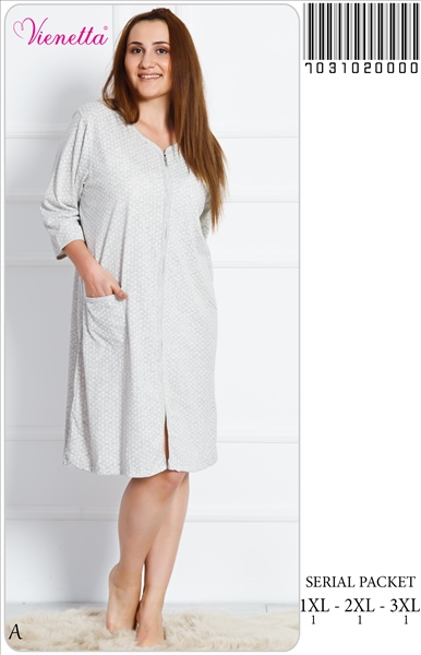 KADIN P.SÜPREM XXLİ FERMUARLI 3/4 KOL EV ELBISESI- - 7031020000