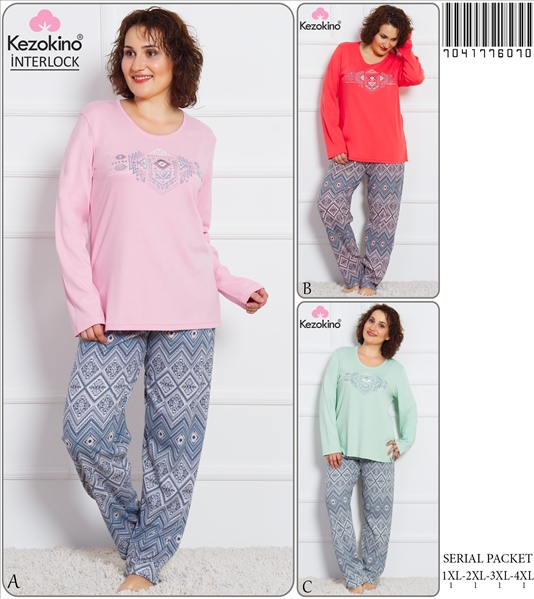 KEZ - BAYAN INTERLOK XXLI O YAKA PIJAMA TAKIM - 7041776070