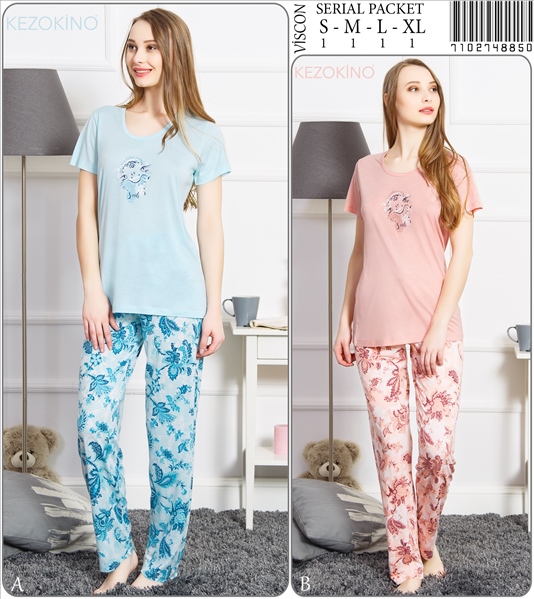 Stok Adı : BAYAN VISCON O YAKA KISA KOL KROSETALI PIJAMA TAKIM