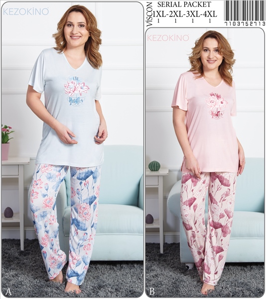 Stok Adı : BAYAN VISCON XXL V YAKA KROSETALI KISA KOL PIJAMA TAKIM