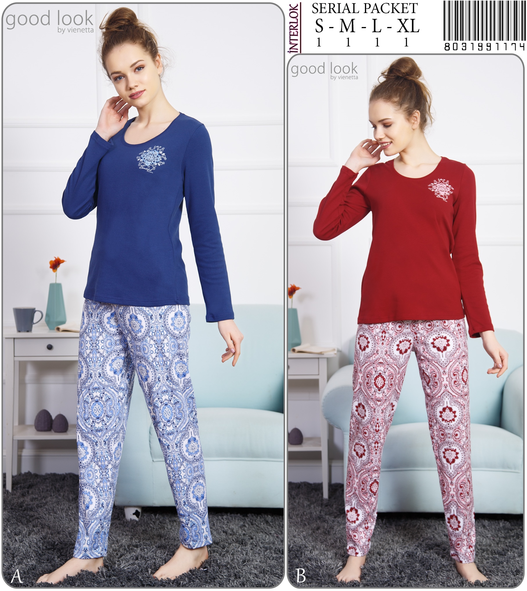 Stok Adı : BAYAN O.INTERLOK O YAKA U KOL DAR PACA PIJAMA TAKIM