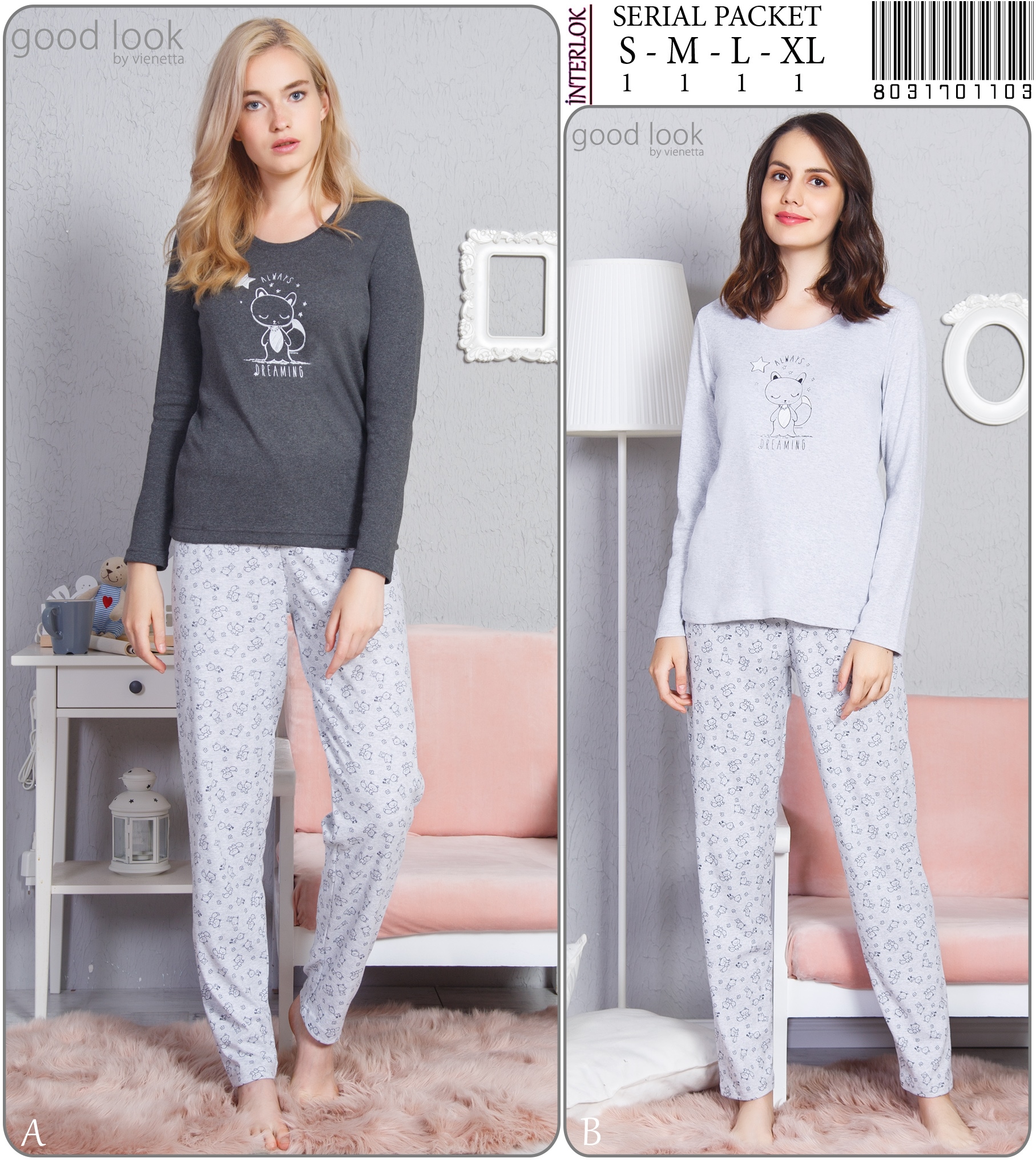 BAYAN O.INTERLOK O YAKA U KOL DAR PACA PIJAMA TAKIM - 8031701103