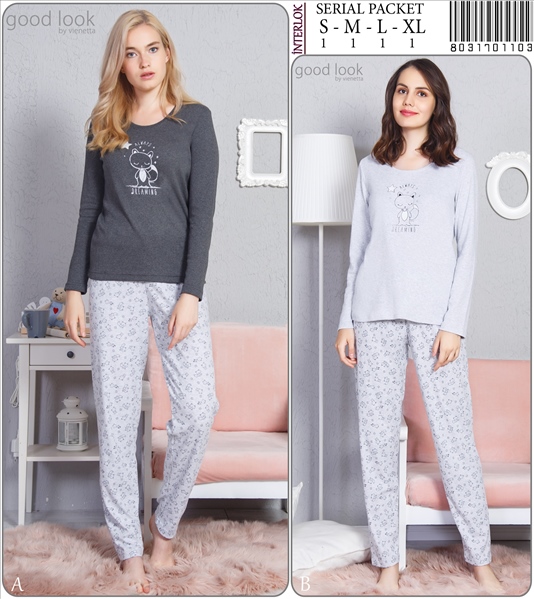 Stok Adı : BAYAN O.INTERLOK O YAKA U KOL DAR PACA PIJAMA TAKIM