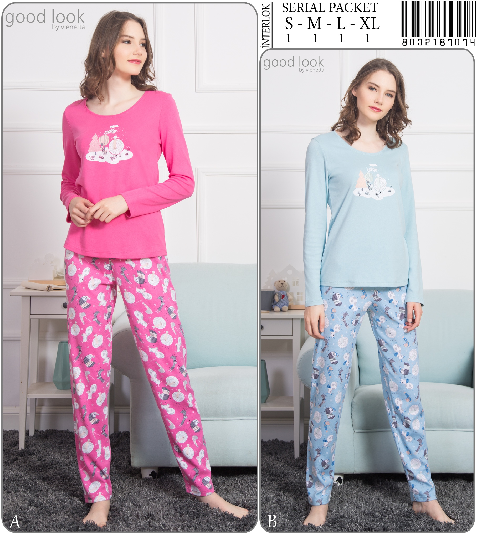 Stok Adı : BAYAN O.INTERLOK O YAKA U KOL DAR PACA PIJAMA TAKIM