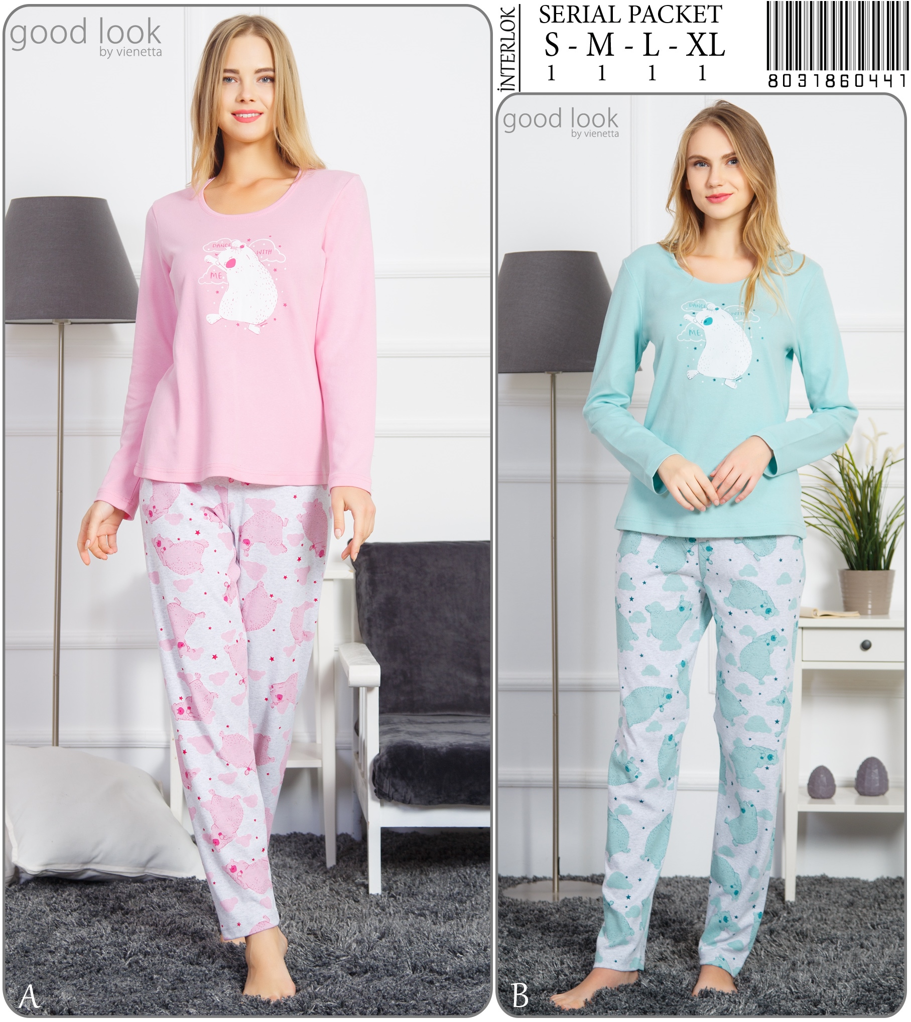 Stok Adı : BAYAN O.INTERLOK O YAKA U KOL DAR PACA PIJAMA TAKIM