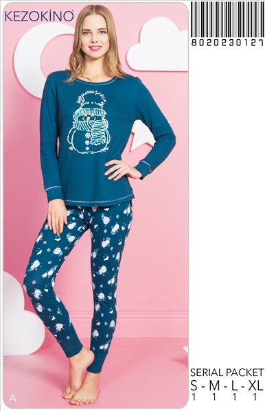 BAYAN P.WAFFLE O YAKA U KOL ONU KISA ARKASI UZUN YIRTMACLI MANSETLI PJ TK - 8020230127