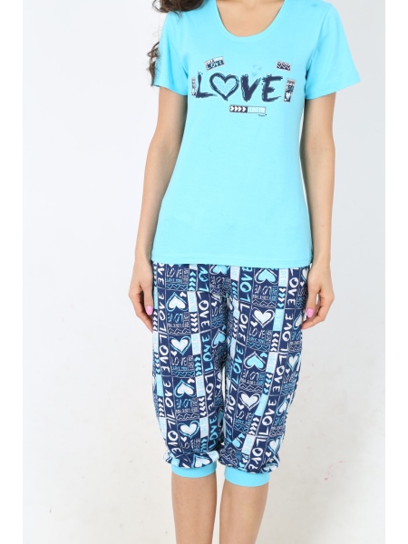 BAYAN PENYE SÜPREM DİBARİ O YAKA PAÇA MANŞETLİ KAPRİ TAKIMI - 4021134217
