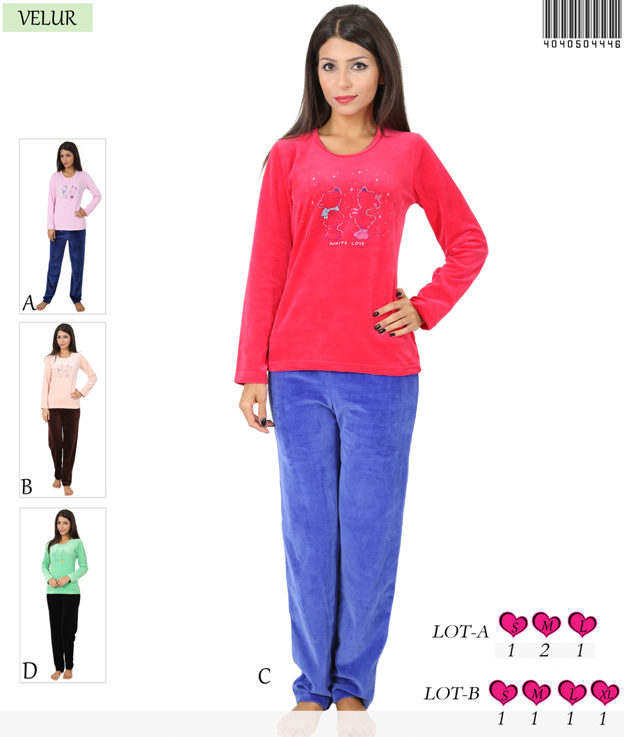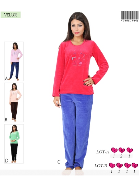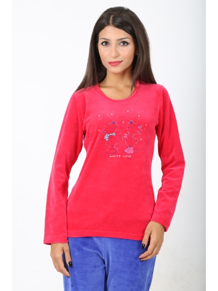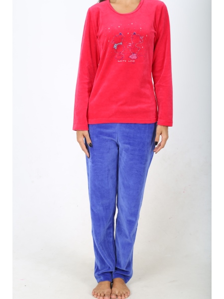 BAYAN KADİFE O YAKA (DAR RECME BİYE) UZUN KOL PİJAMA TAKIMI - 4040504446