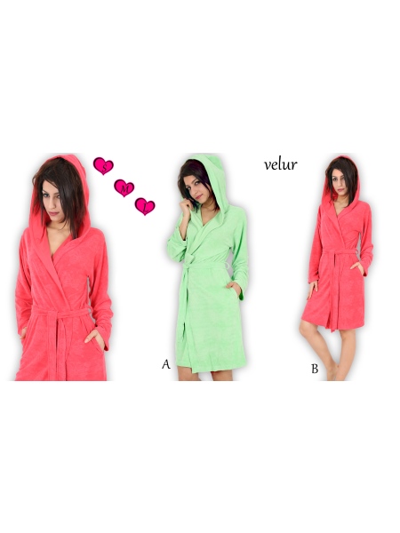 BAYAN KADİFE KAPŞONLU ÇİFT CEPLİ SABAHLIK - 1161251887