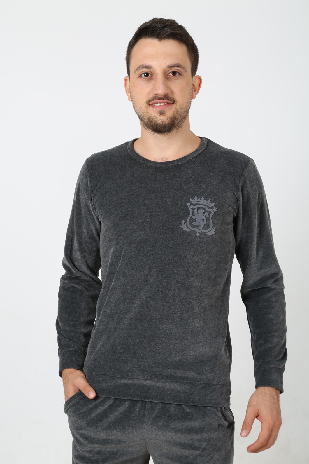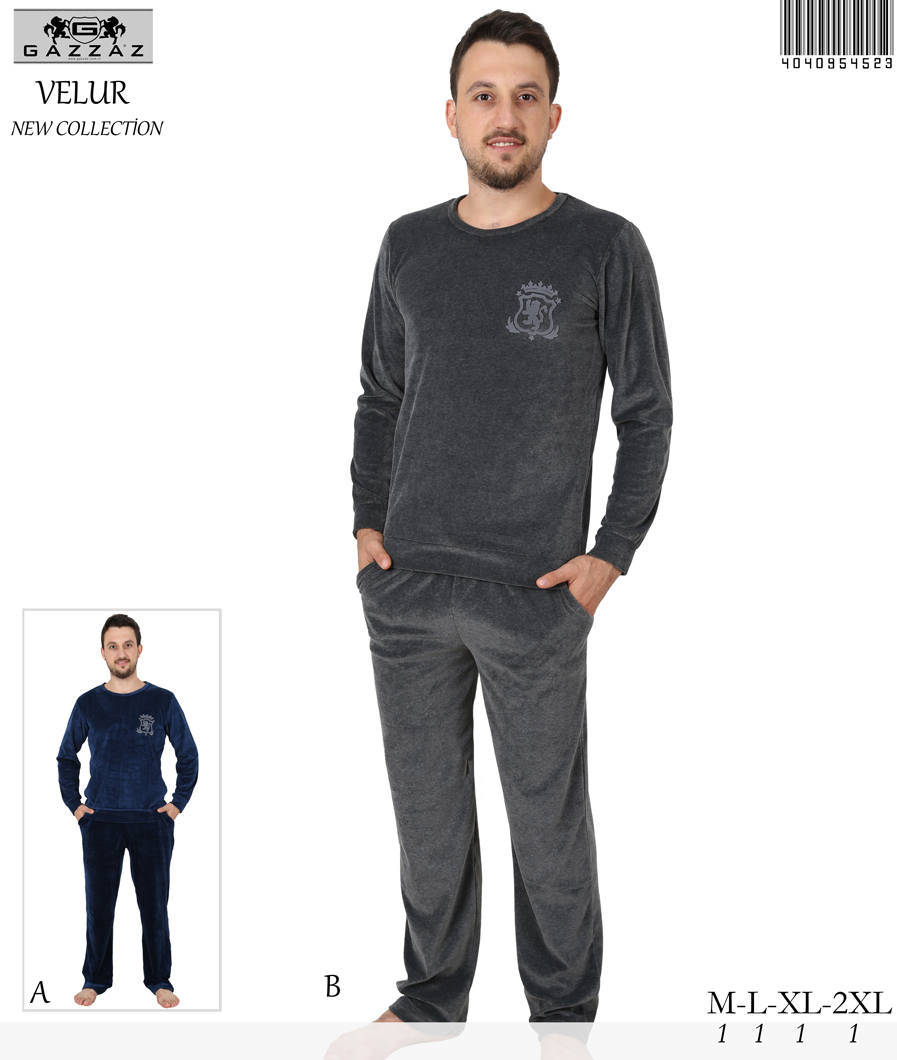 ERKEK KADİFE BİSİKLET YAKA (YAKA RECME BIYE) ETEK VE KOL AGZI MANSETLİ PİJAMA TK. - 4040954523