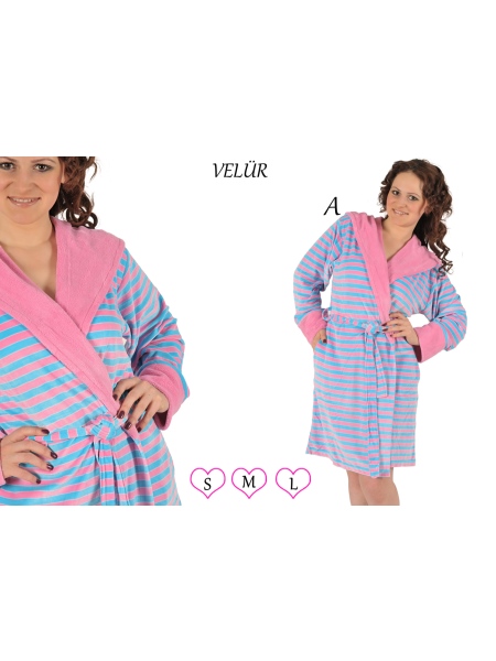 BAYAN ÇİZGİLİ KADİFE ÇİFT CEPLİ KAPŞON VE MANŞET İÇİ GARNİLİ SABAHLIK - 1190811888