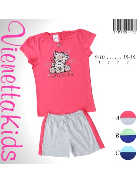 KIZ ÇOCUK PENYE SÜPREM DİBARİ V YAKA KOL BÜZĞÜLÜ ŞORT PARÇALI TAKIM - 3121954139
