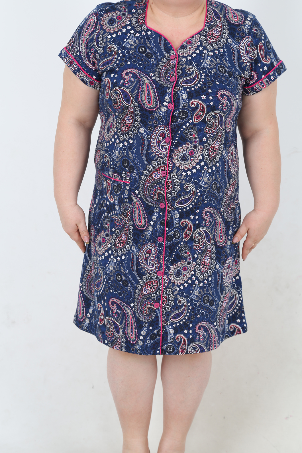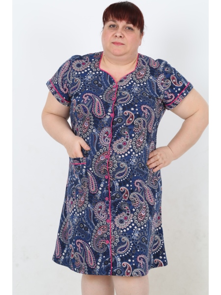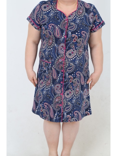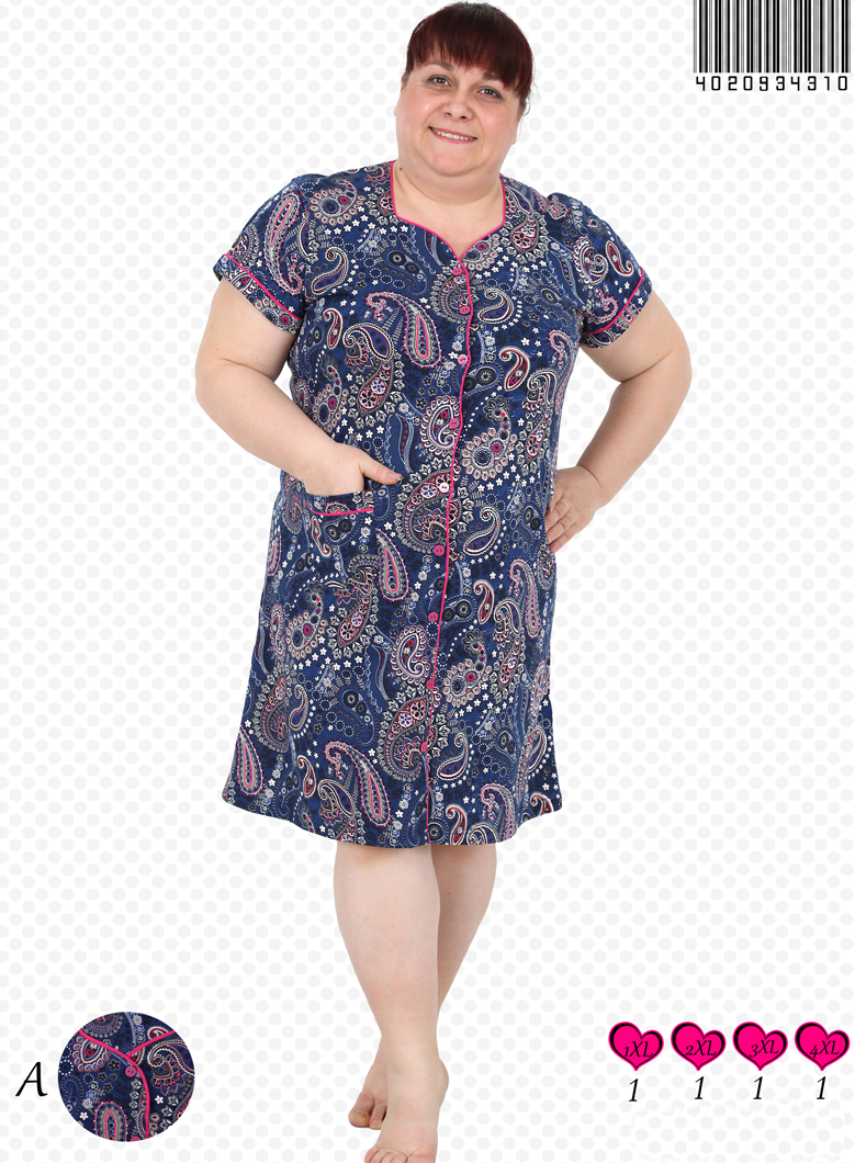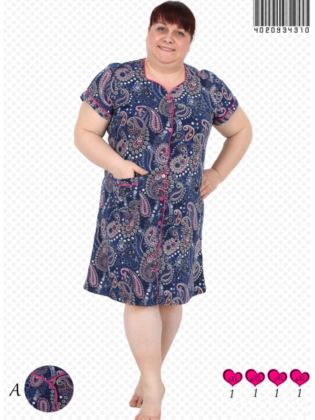 BAYAN PENYE SUPREM XL'Lİ KEP KOLLU BESGEN YAKA TAMAMI DUGMELİ EV ELBİSESİ - 4020934310