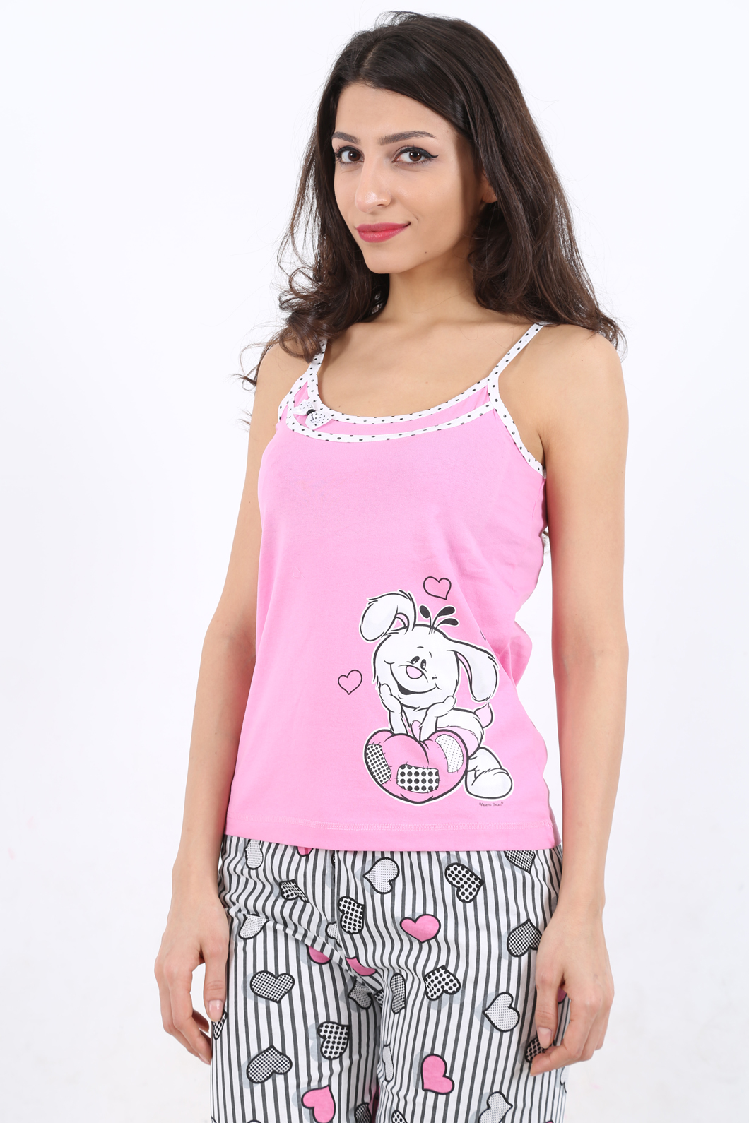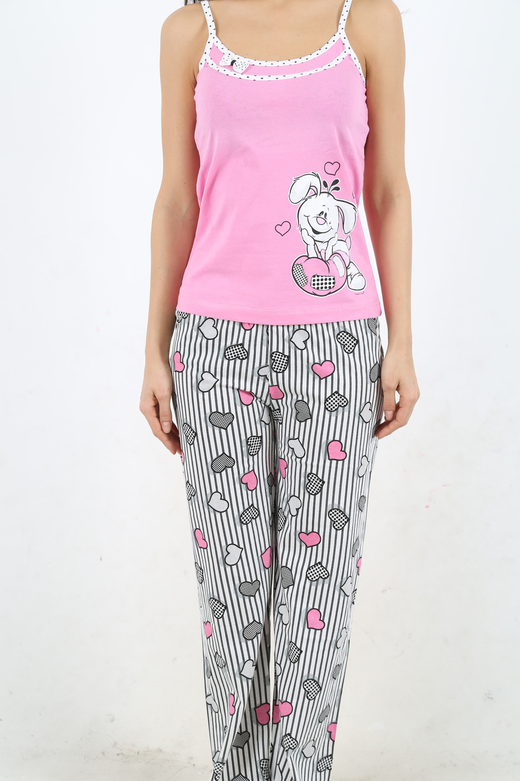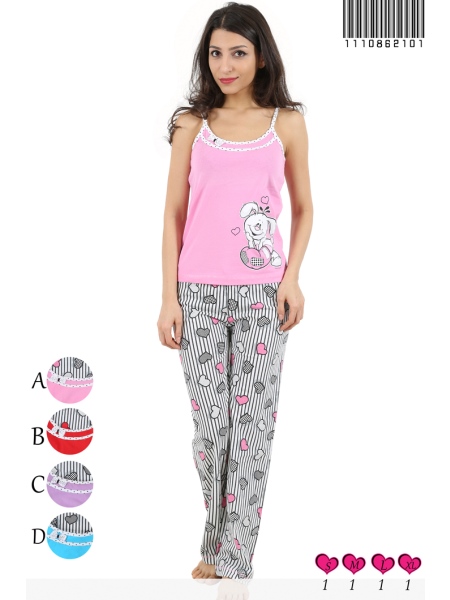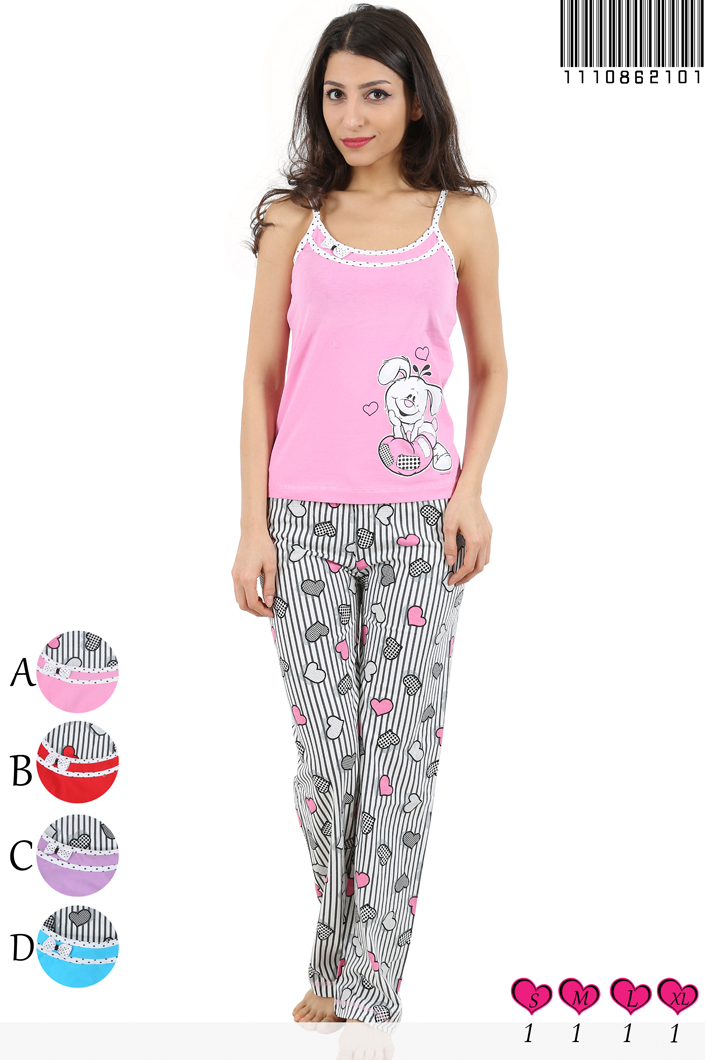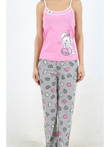 BAYAN SÜPREM İP ASKILI YAKASI SERİTLİ FİYONKLU UZUN PACALI PİJAMA TK - 1110862101
