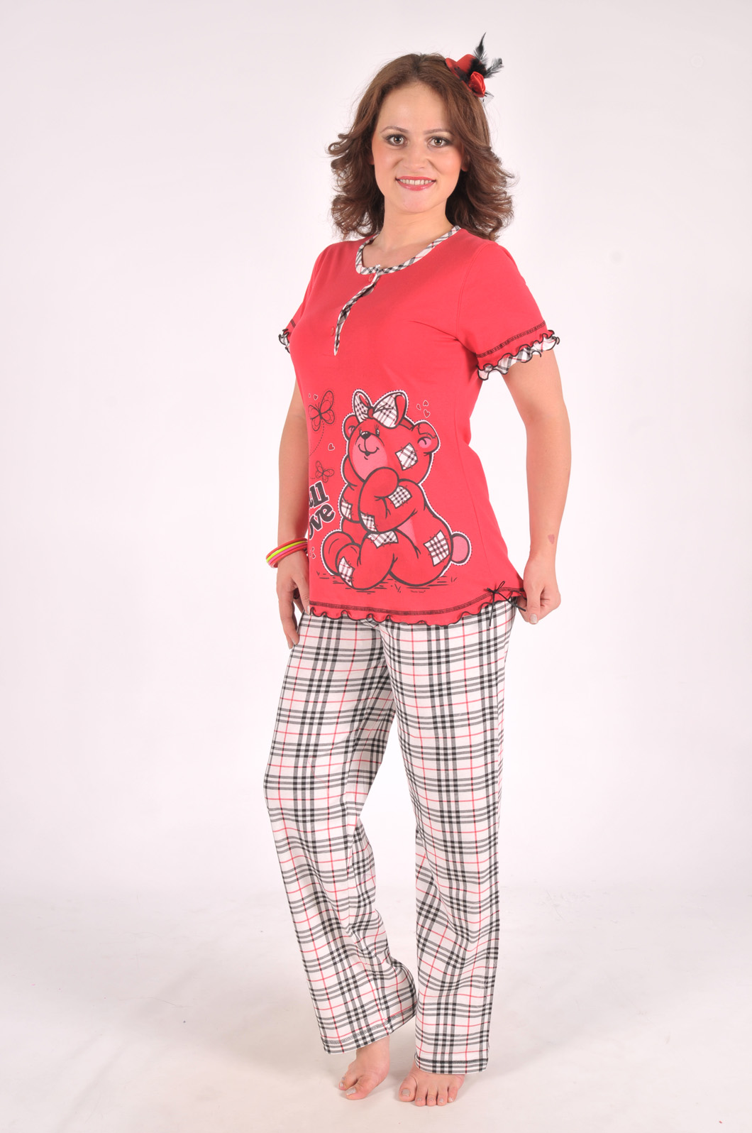 Stok Adı : BAYAN SÜPREM PATLI ETEĞİ OVAL KOL UCU PARÇALI BİBİLALI PJ TAKIM