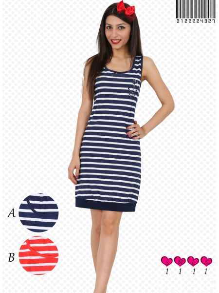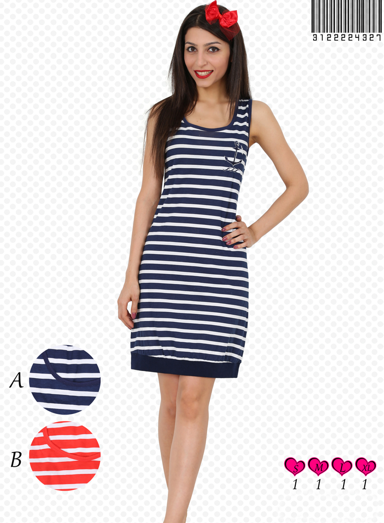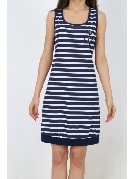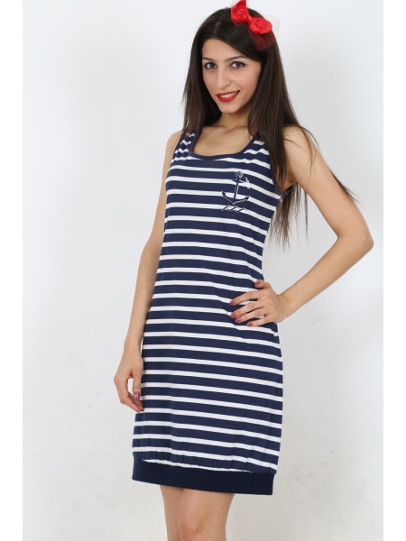 BAYAN PENYE SUPREM MARİN KALIN ASKILI FERMUARLI ETEGİ MANSETLİ EV ELBİSESİ - 3122224327