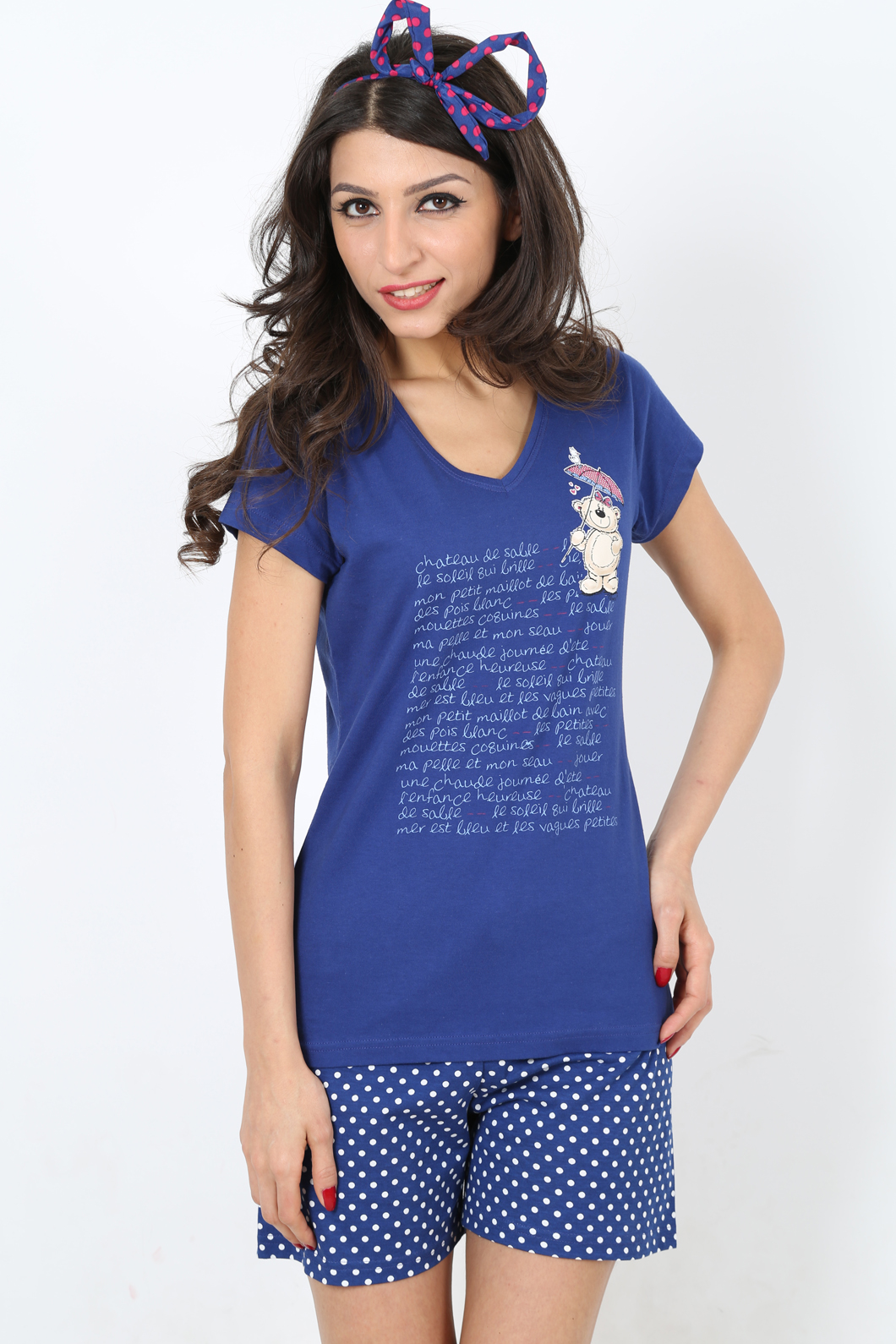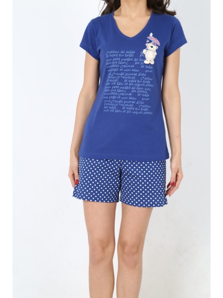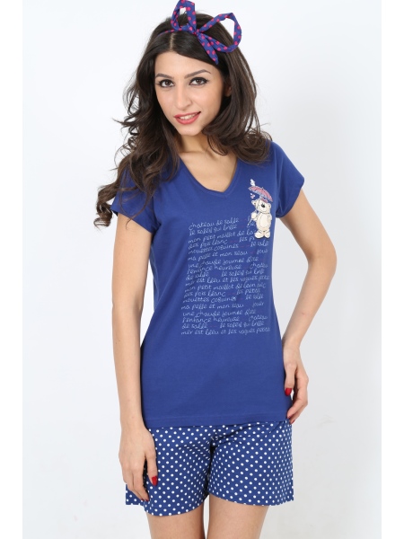 BAYAN SÜPREM MARİN KAYIK YAKA KEP KOL V YAKALI ŞORT TAKIM - 3111294193