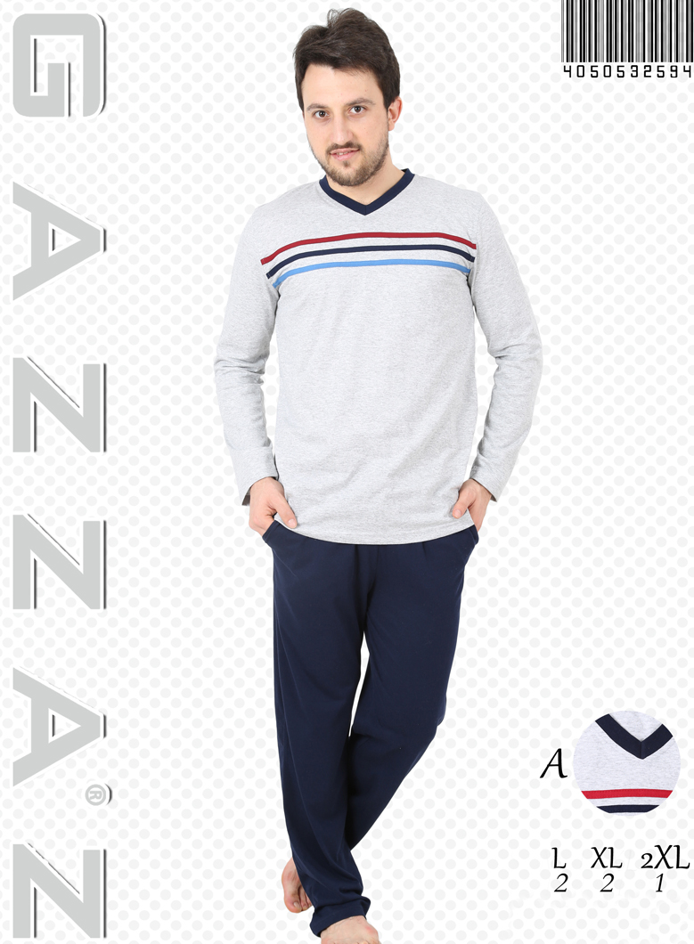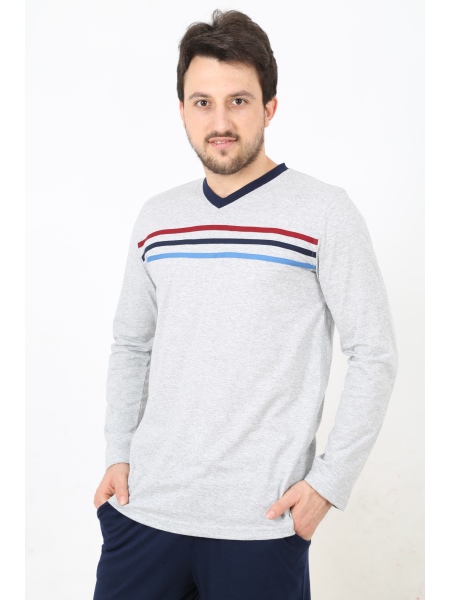 ERKEK V YAKA GÖĞÜS ŞERİTLİ PİJAMA TK. - 4050532594