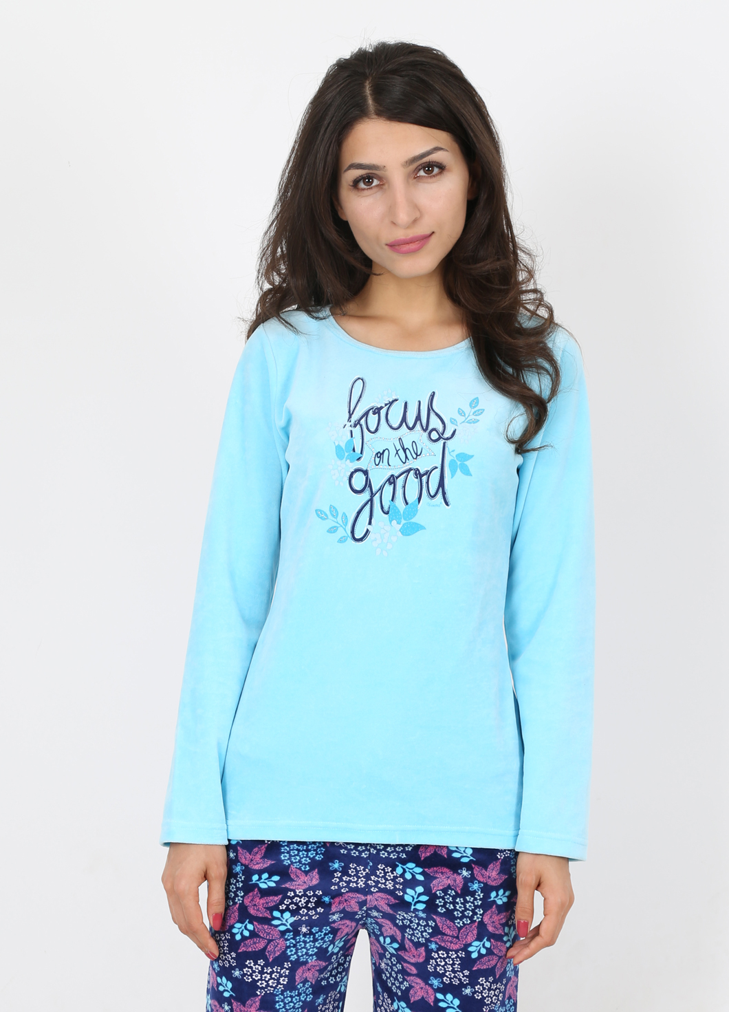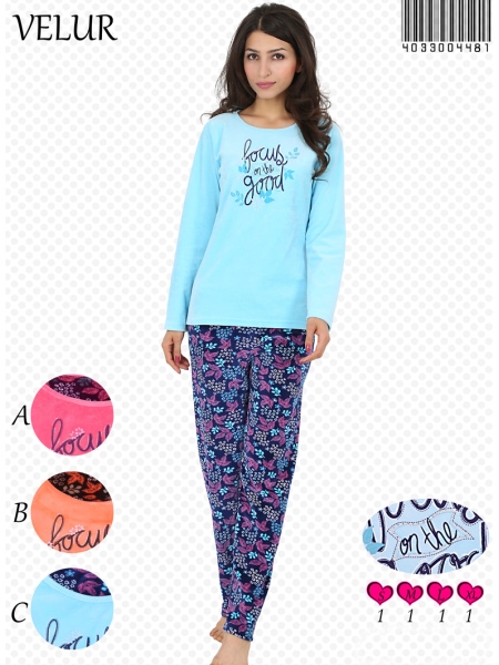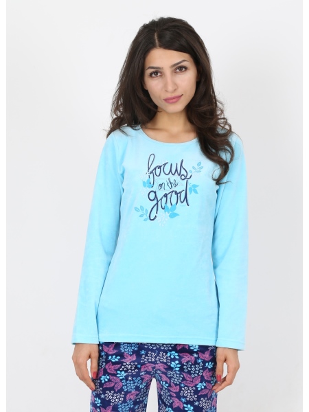 BAYAN KADİFE KAYIK YAKA PİJAMA TAKIM - 4033004481