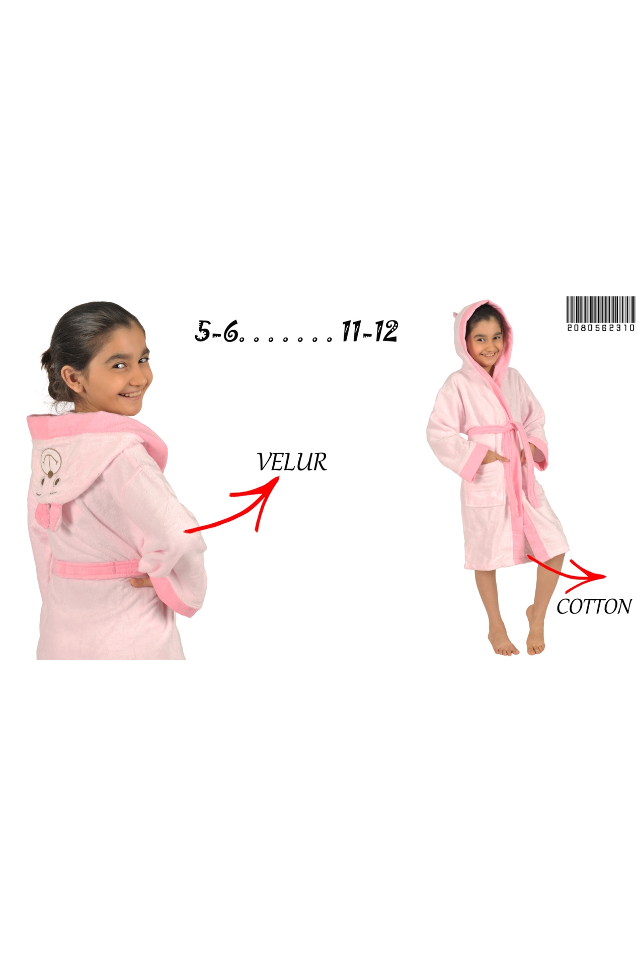 KIZ ÇOCUK HAVLU TAVŞAN KULAKLI SABAHLIK(5-6/11-12 YAŞ ARASI) - 2080562310