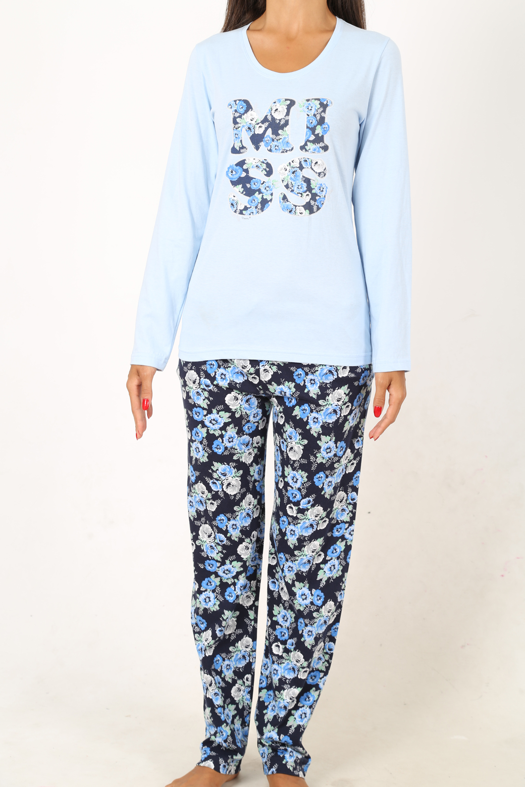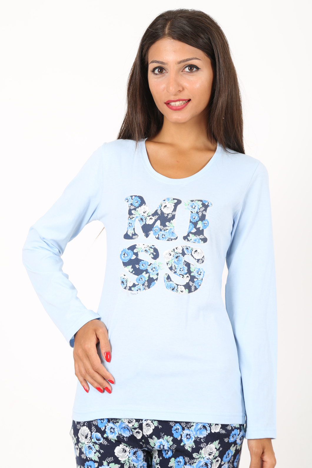 BAYAN PENYE SUPREM O YAKA (YAKA DİBARİ) UZUN KOL PİJAMA TAKIMI - 4050814318