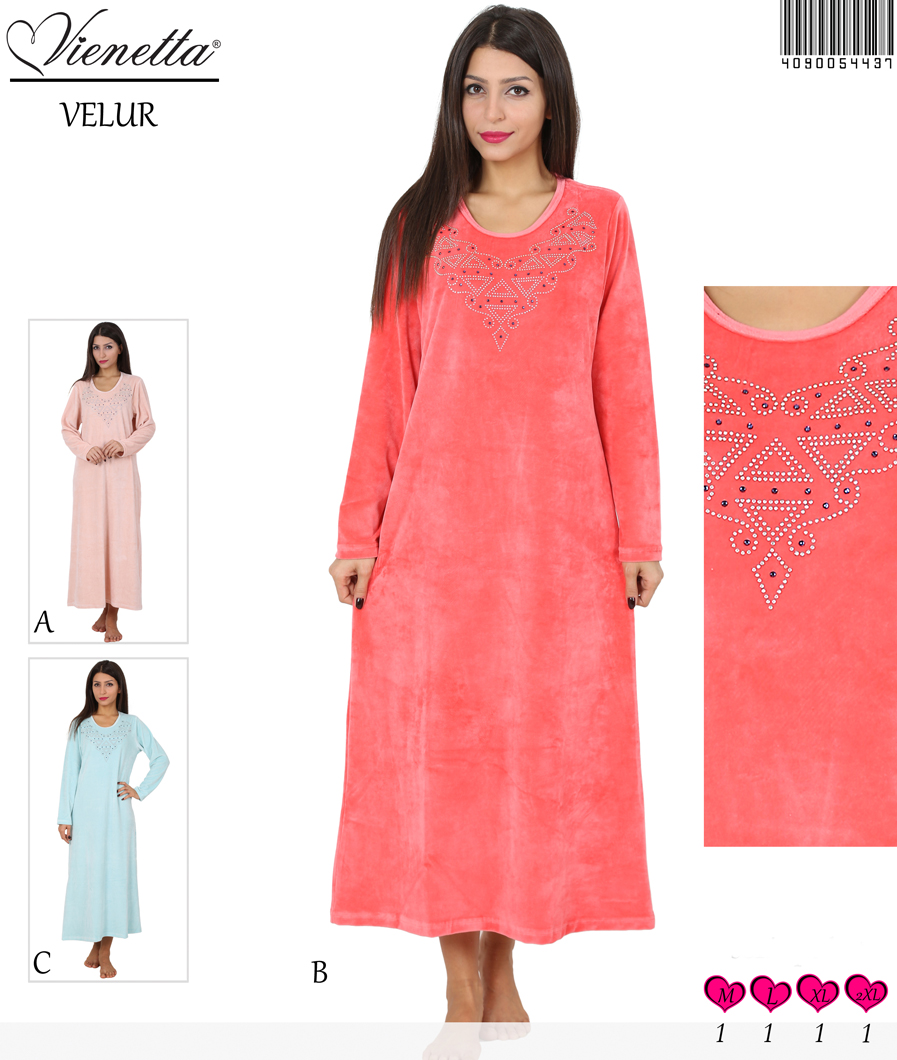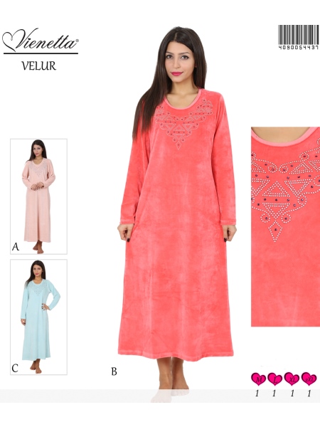 BAYAN KADIFE BISIKLET YAKALI UZUN ELBISE - 4090054437