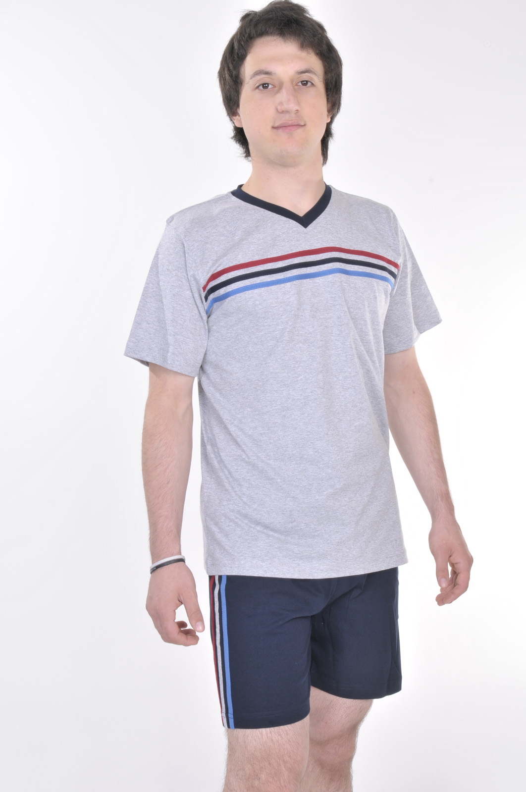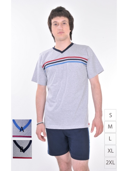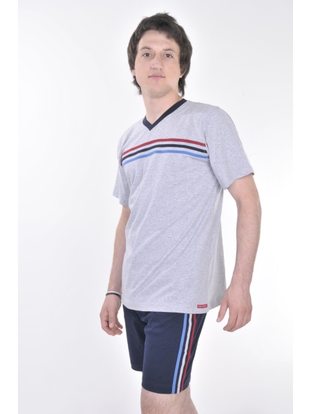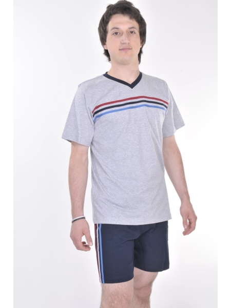 ERKEK V YAKA GÖĞÜSÜ VE ŞORTU ŞERİTLİ ŞORT TAKIM - 1150980515