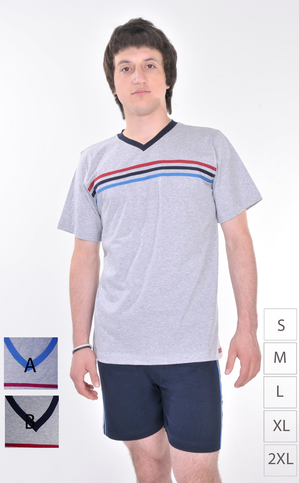 Stok Adı : ERKEK V YAKA GÖĞÜSÜ VE ŞORTU ŞERİTLİ ŞORT TAKIM