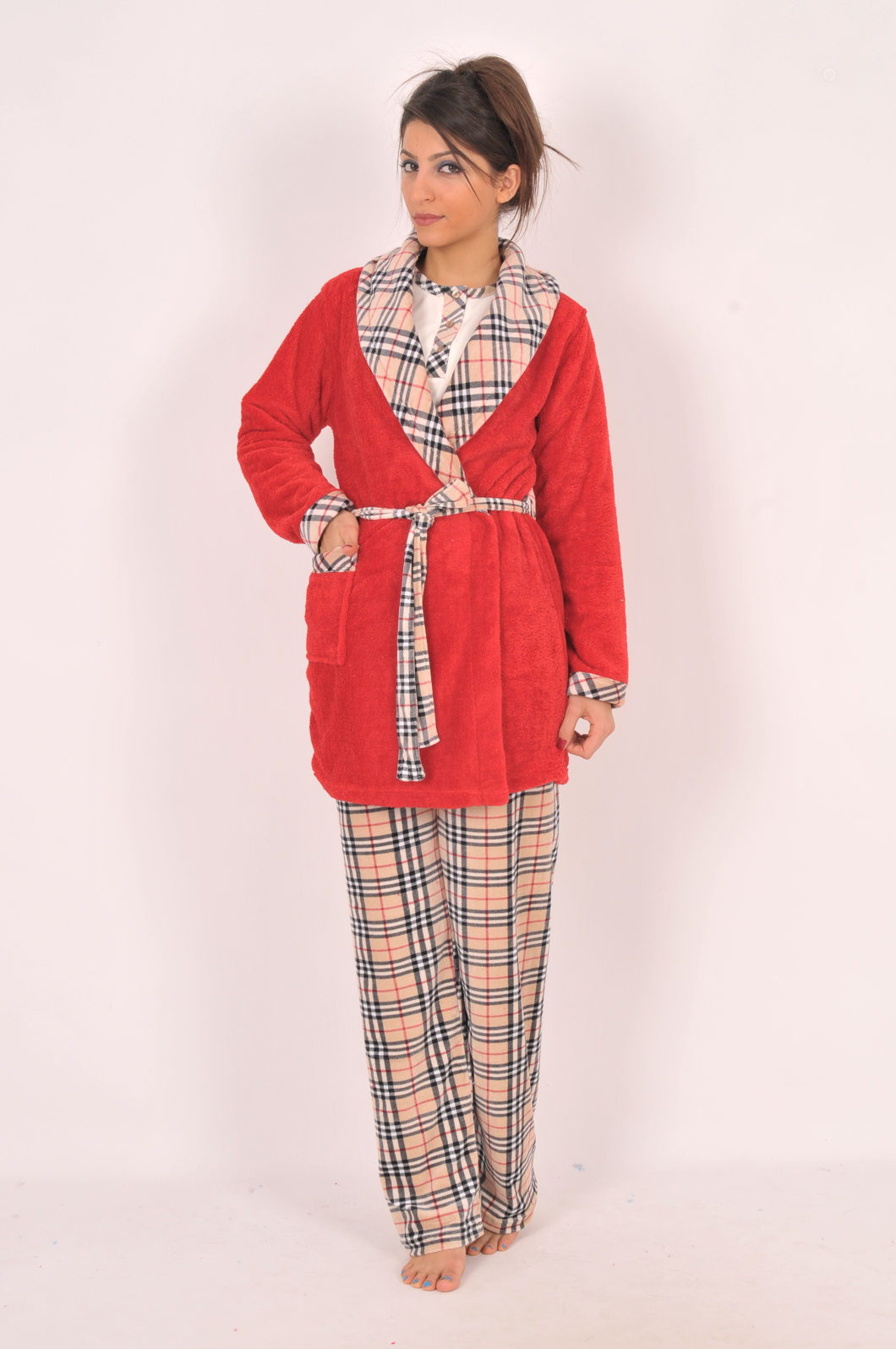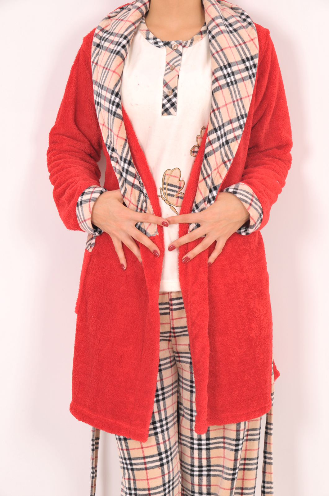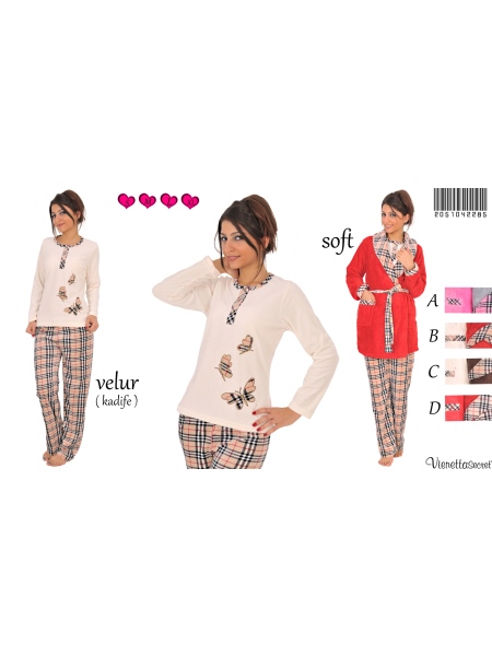 Stok Adı : BAYAN 3-LÜ KADİFE PATLI PİJAMA SOFT SABAHLIK TAKIMI