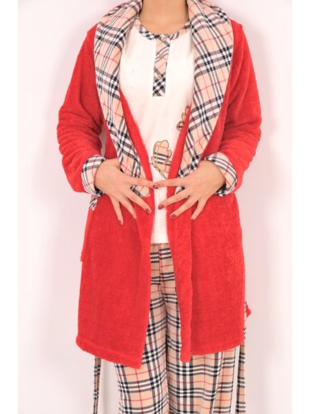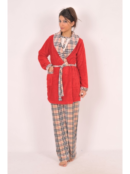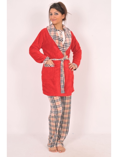 BAYAN 3-LÜ KADİFE PATLI PİJAMA SOFT SABAHLIK TAKIMI - 2051042285