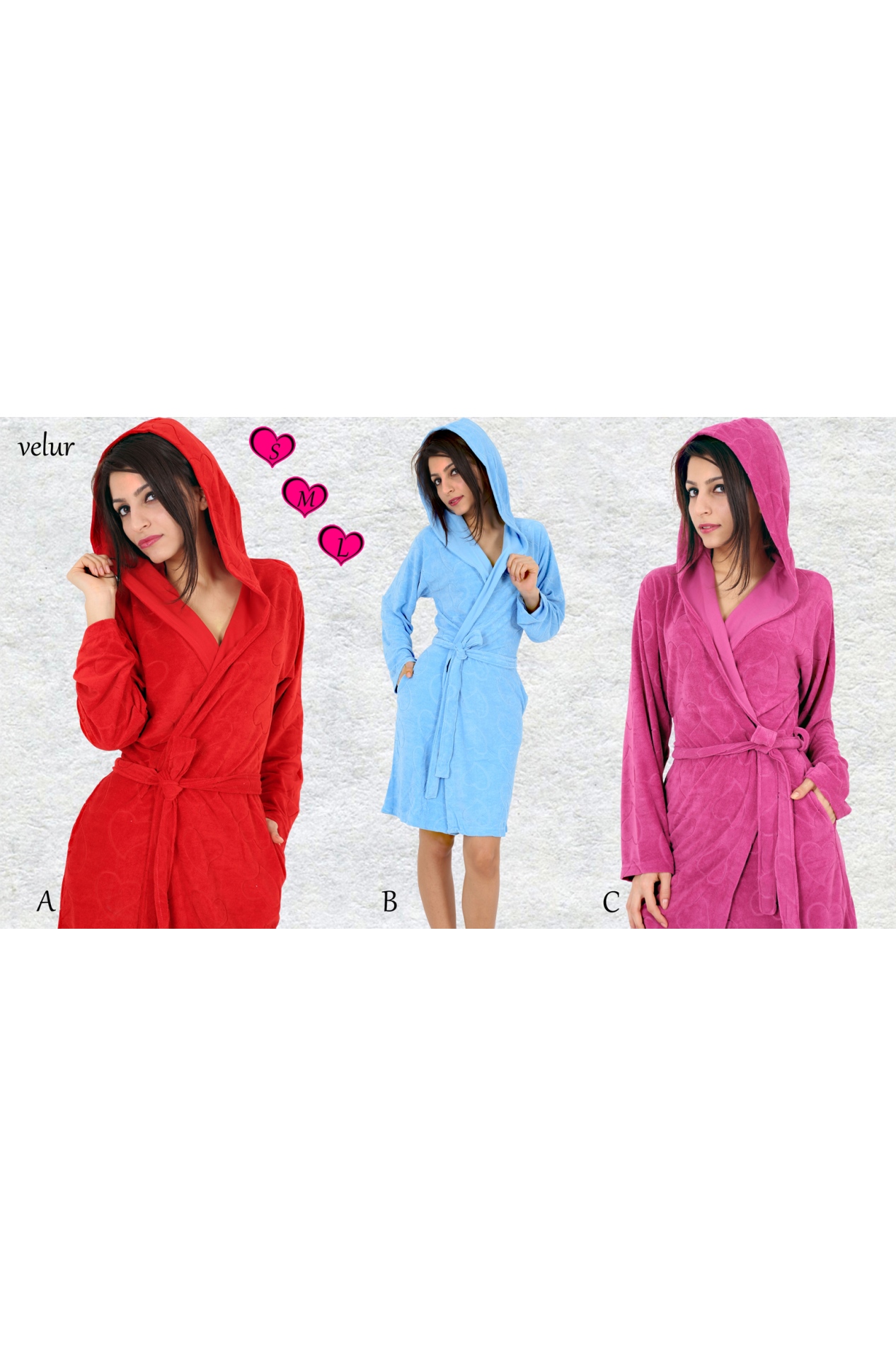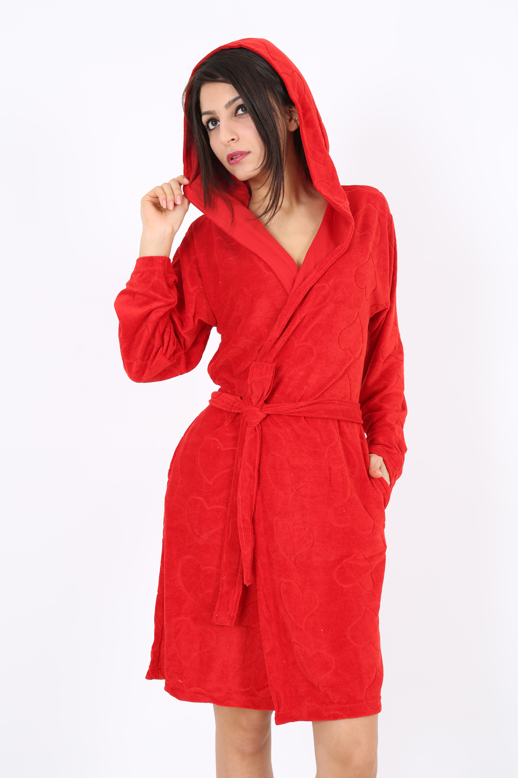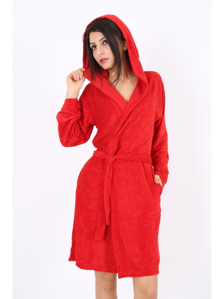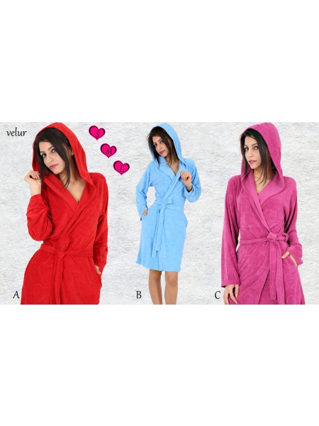 BAYAN KADİFE KAPŞONLU ÇİFT CEPLİ SABAHLIK - 1161281887