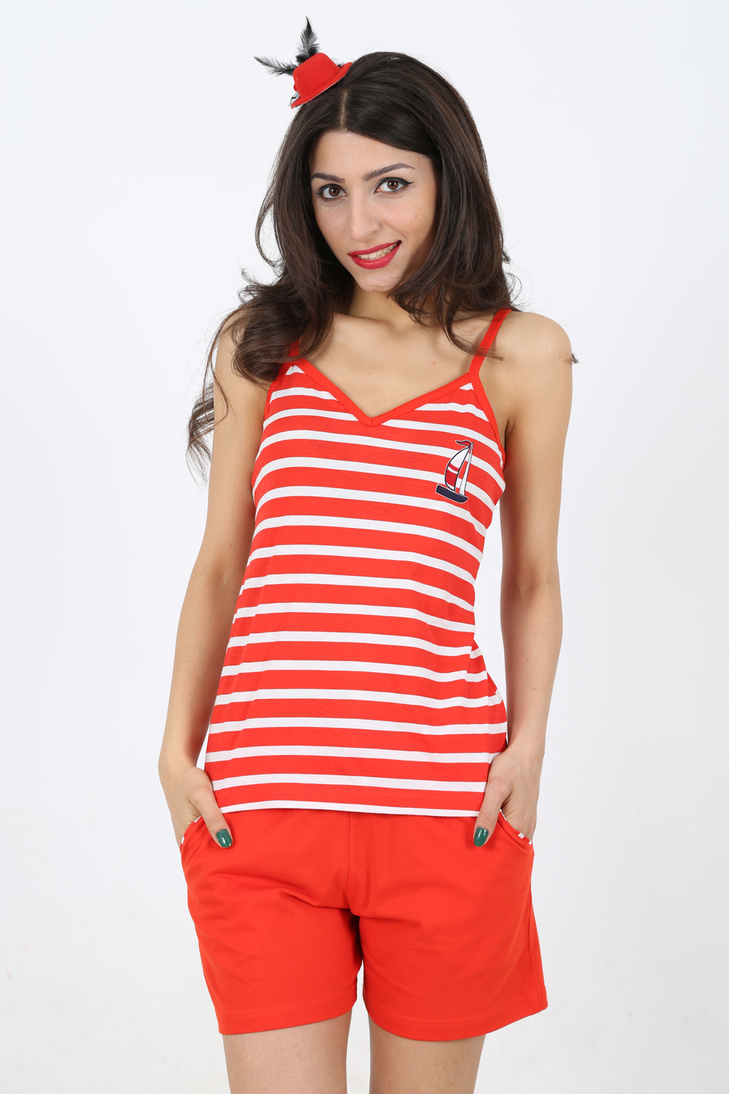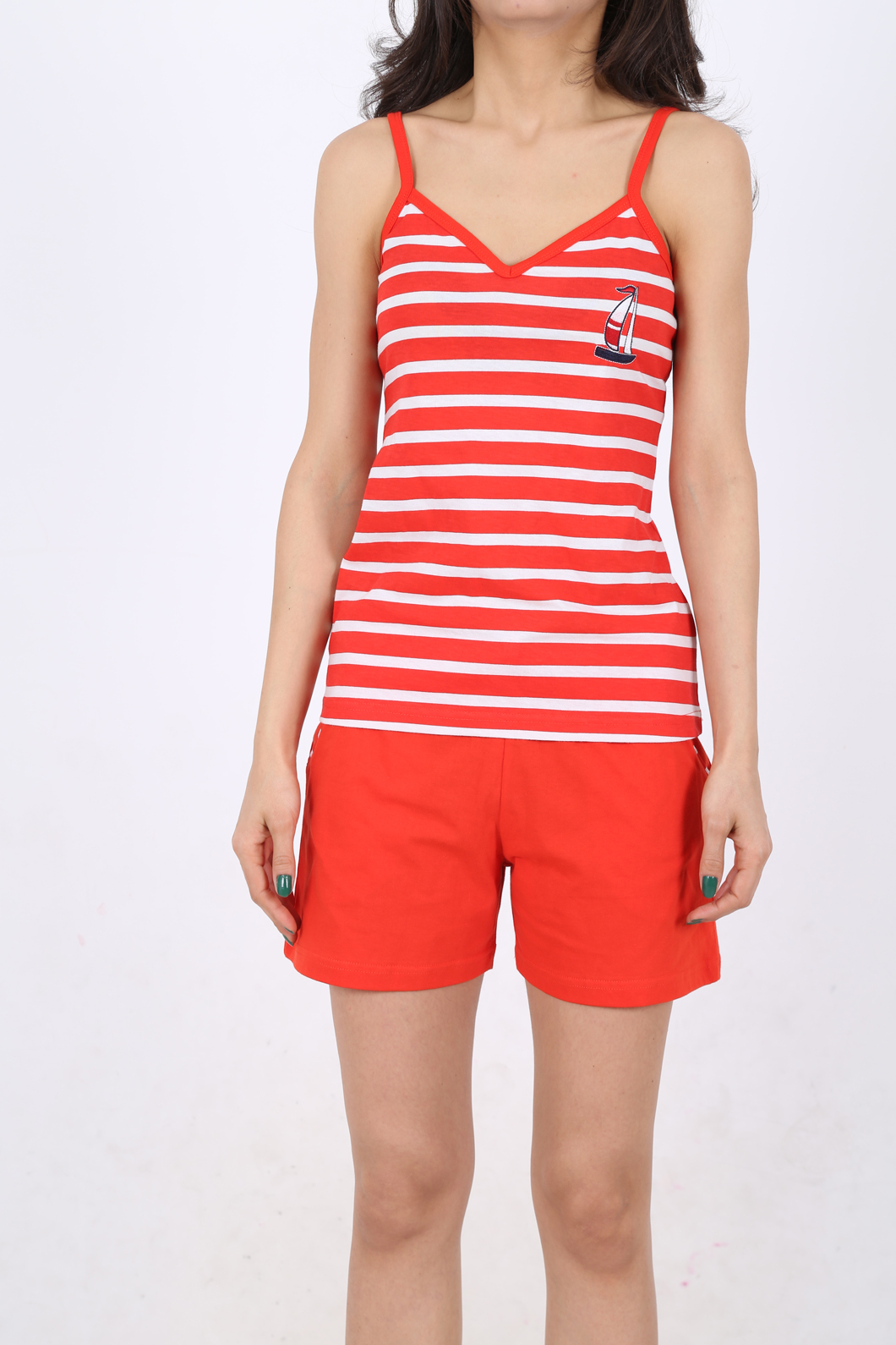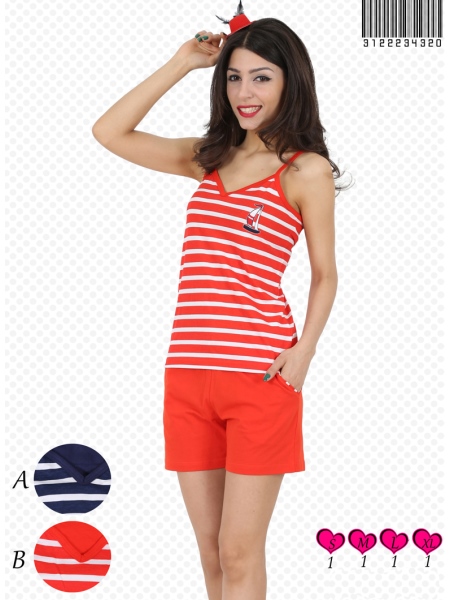 BAYAN PENYE SUPREM MARİN İP ASKILI V YAKALI CEPLİ SORT TAKIM - 3122234320
