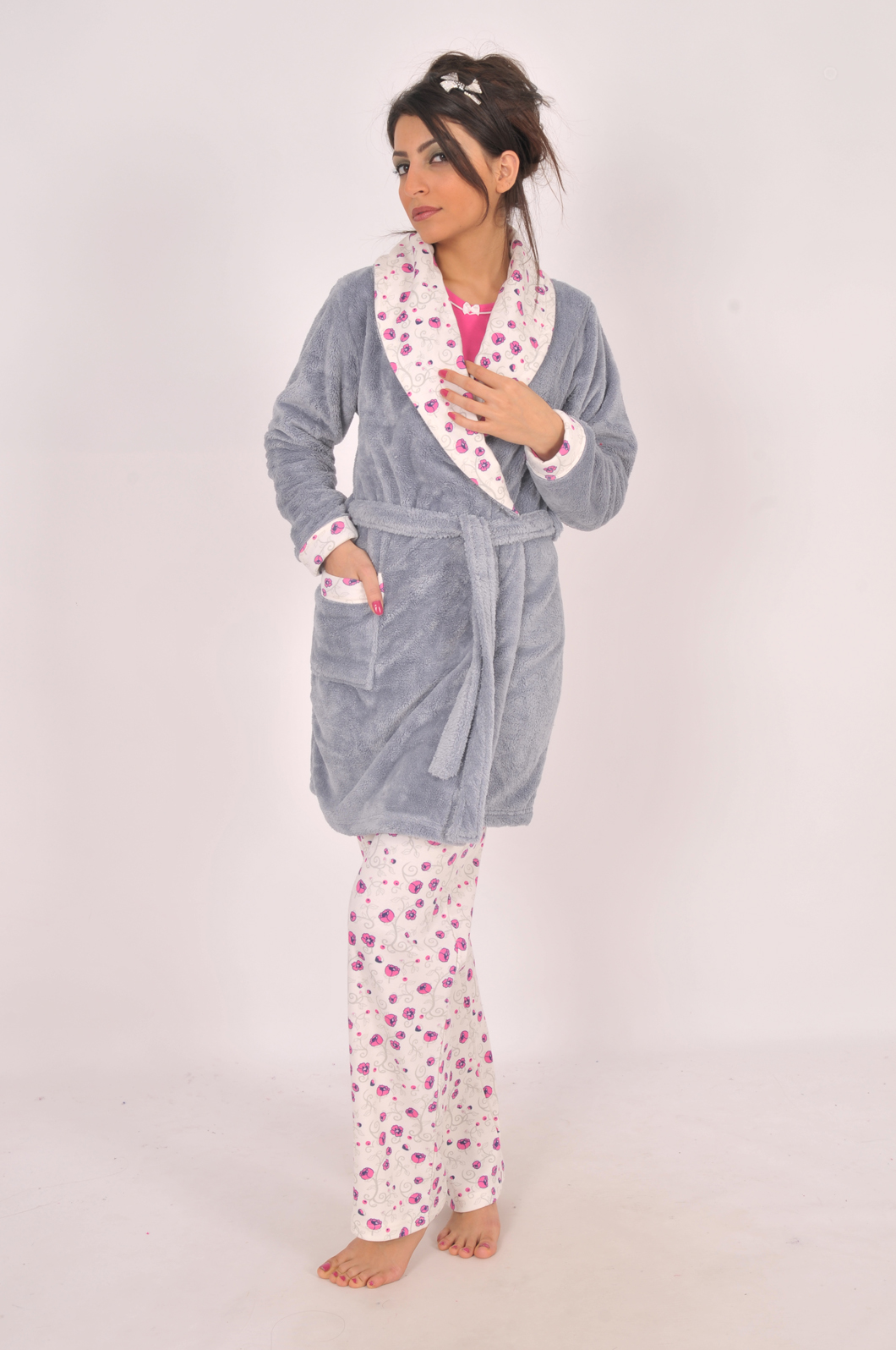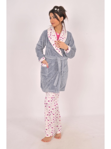 Stok Adı : BAYAN 3-LU İNTERLOK V YAKA ARA BİYELİ PİJAMA SAL YAKA SOFT SABAHLIK TAKIMI