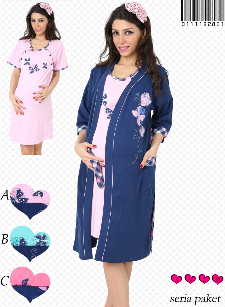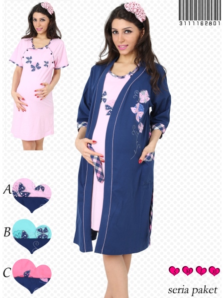 BAYAN SÜPREM TUNİĞİ KISA KOLLU SEKİZ DÜĞMELİ HAMİLE SABAHLİK TAKIMI - 3111162801