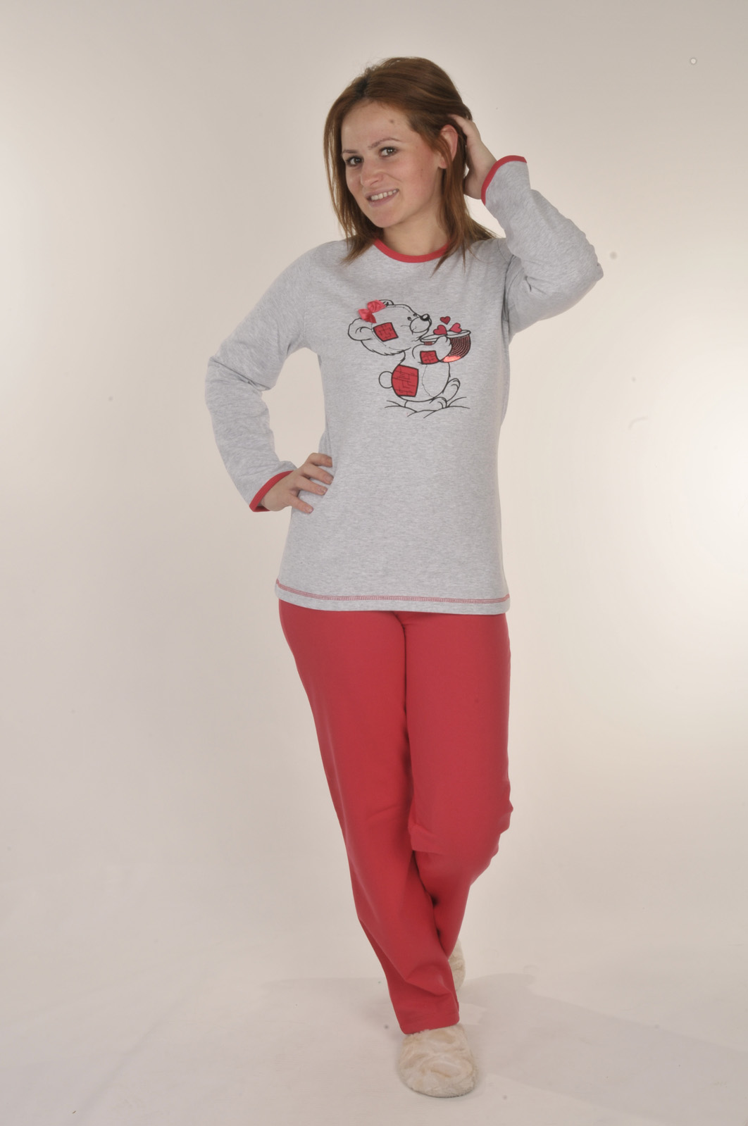 Stok Adı : AYI İKİ İPLİK BAYAN TAKMA KOL PİJAMA TK