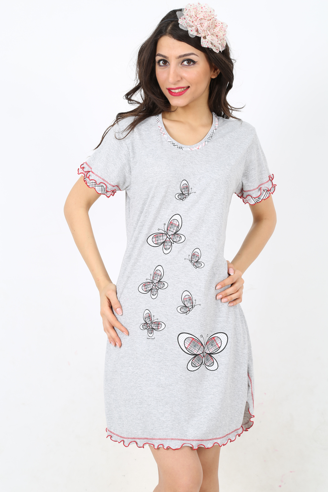BAYAN KISA KOL ÇİFT BİYELİ KOL UCU BİBİLALI TUNİK - 4050792461