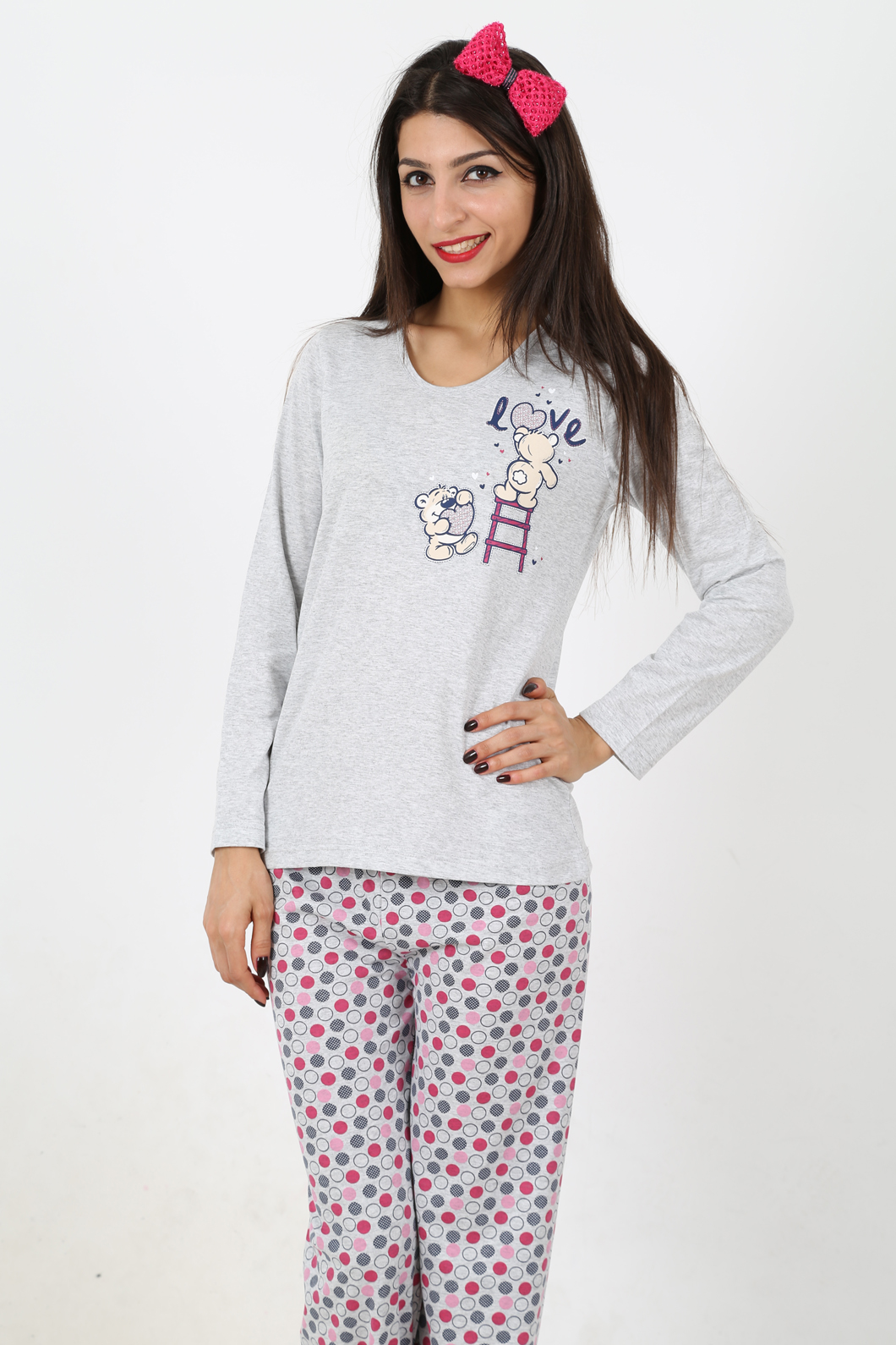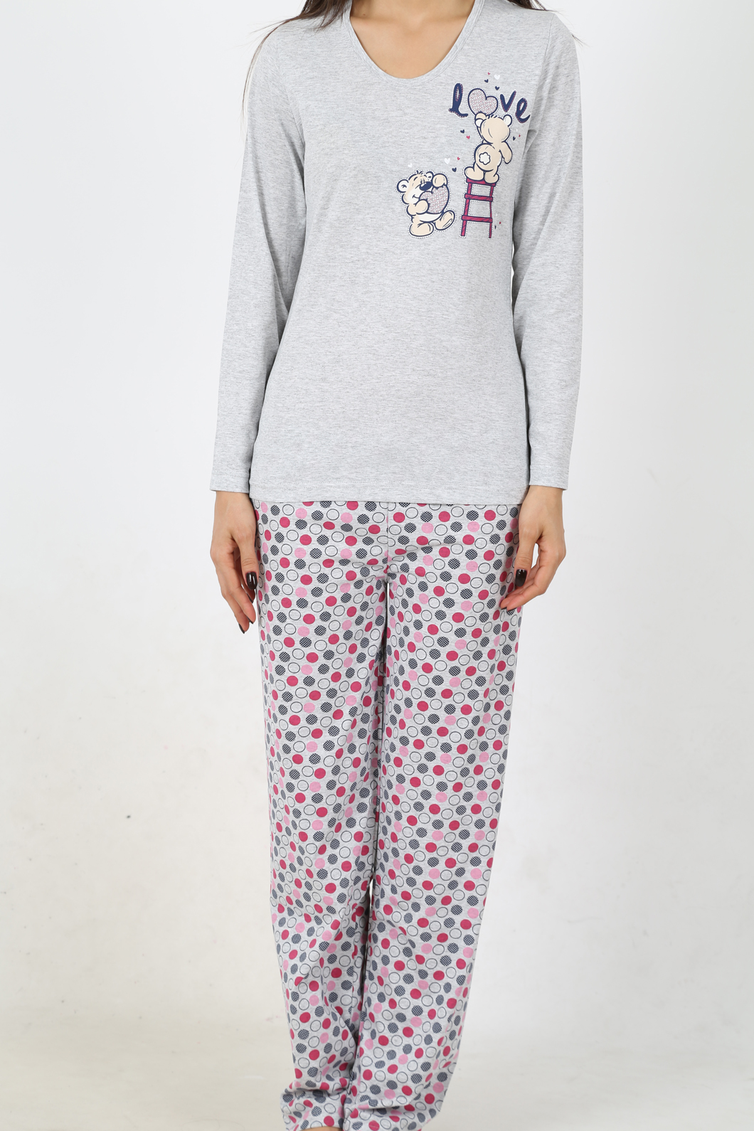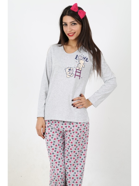 BAYAN BISIKLET YAKA TAKMA KOLLU SIFIR YAKA PİJAMA TAKIMI - 4031857003