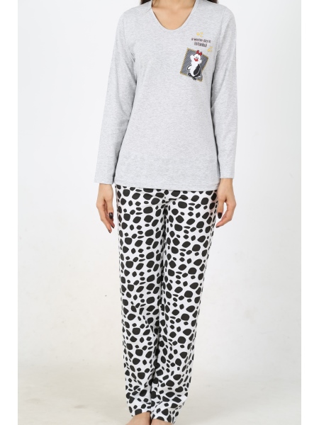 BAYAN BISIKLET YAKA TAKMA KOLLU SIFIR YAKA PİJAMA TAKIMI - 4031627003
