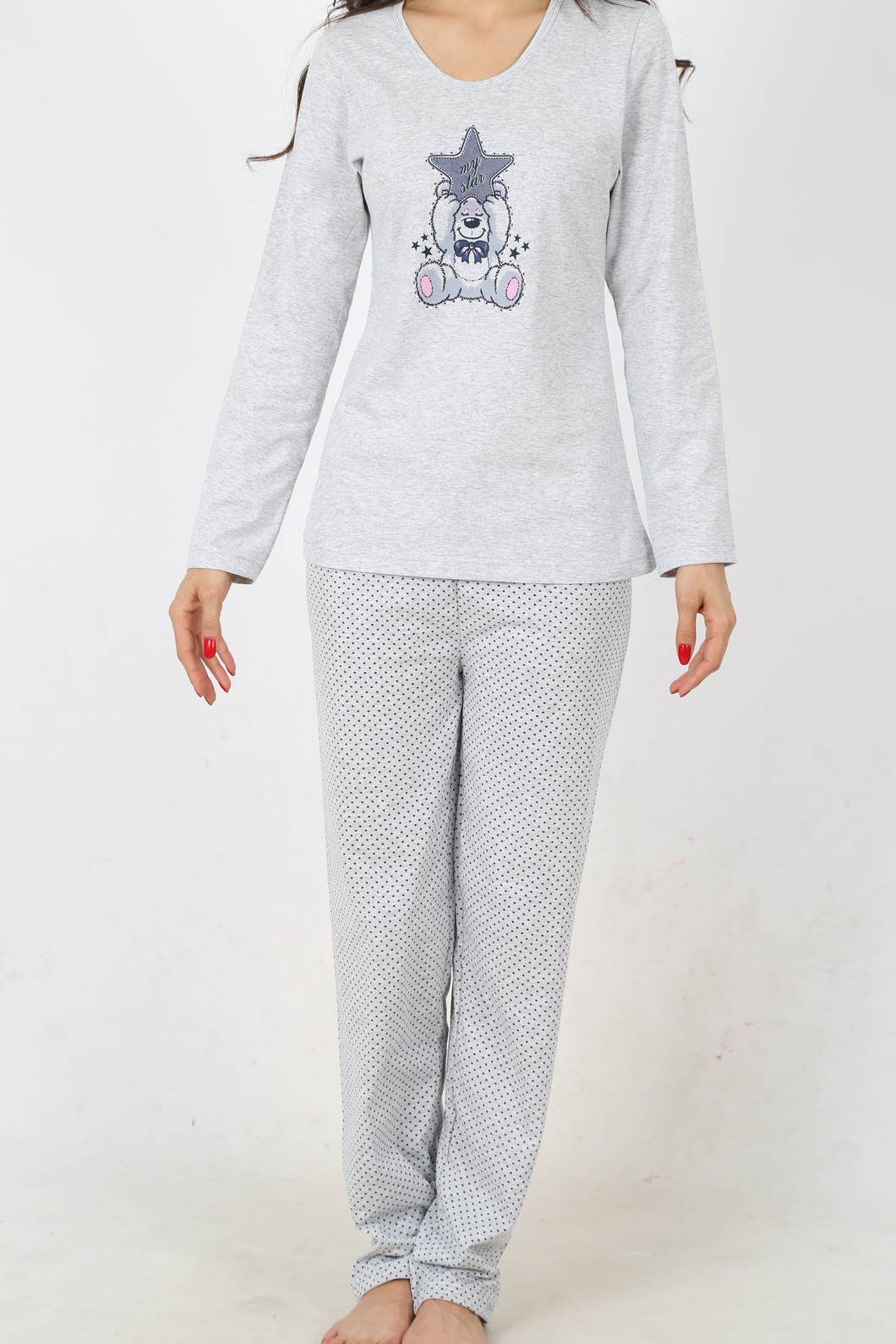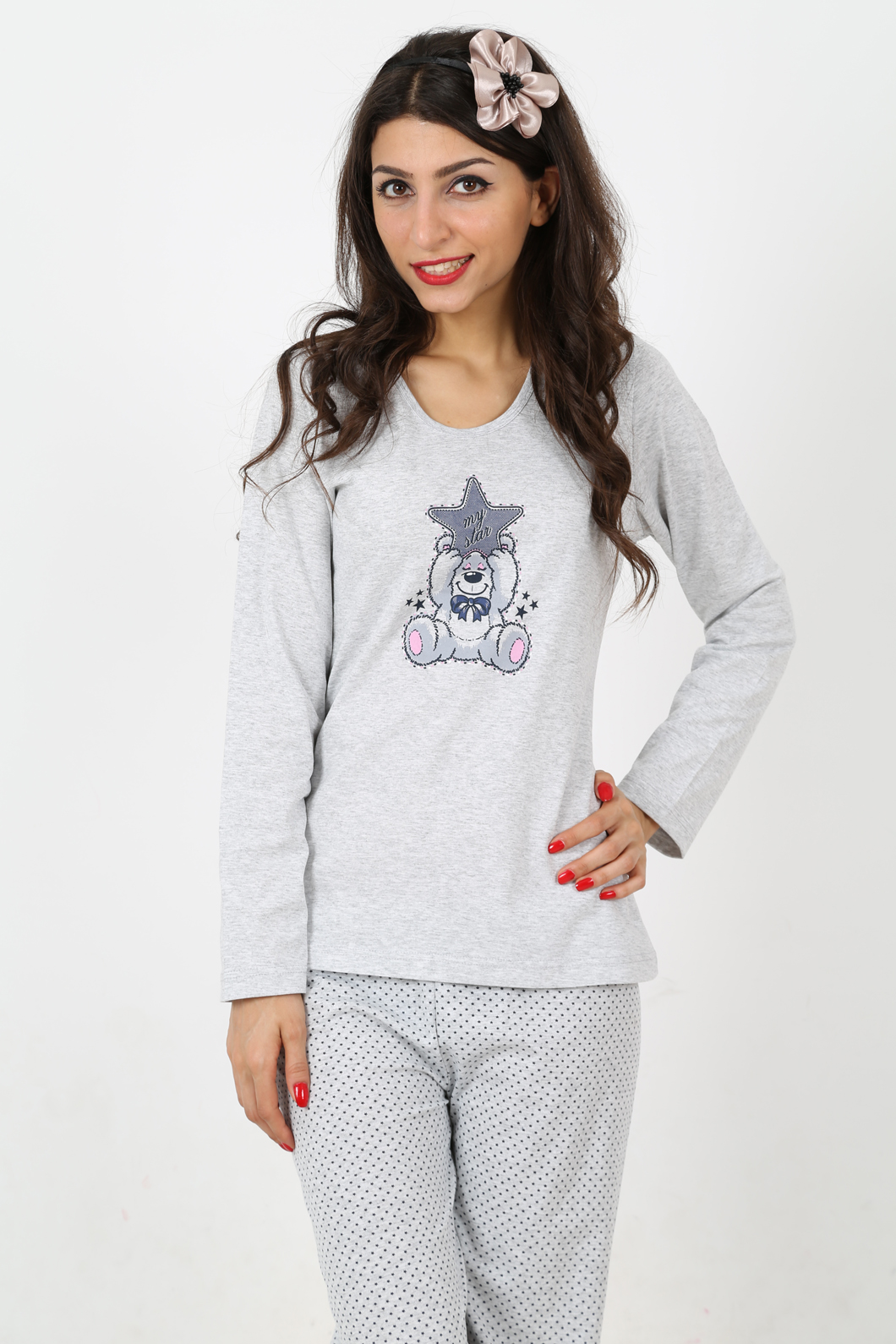 BAYAN BISIKLET YAKA TAKMA KOLLU SIFIR YAKA PİJAMA TAKIMI - 4031797003