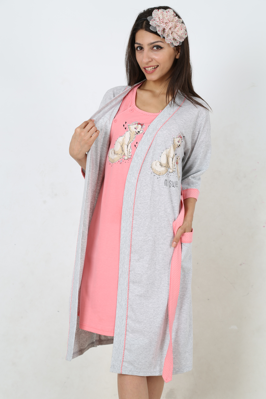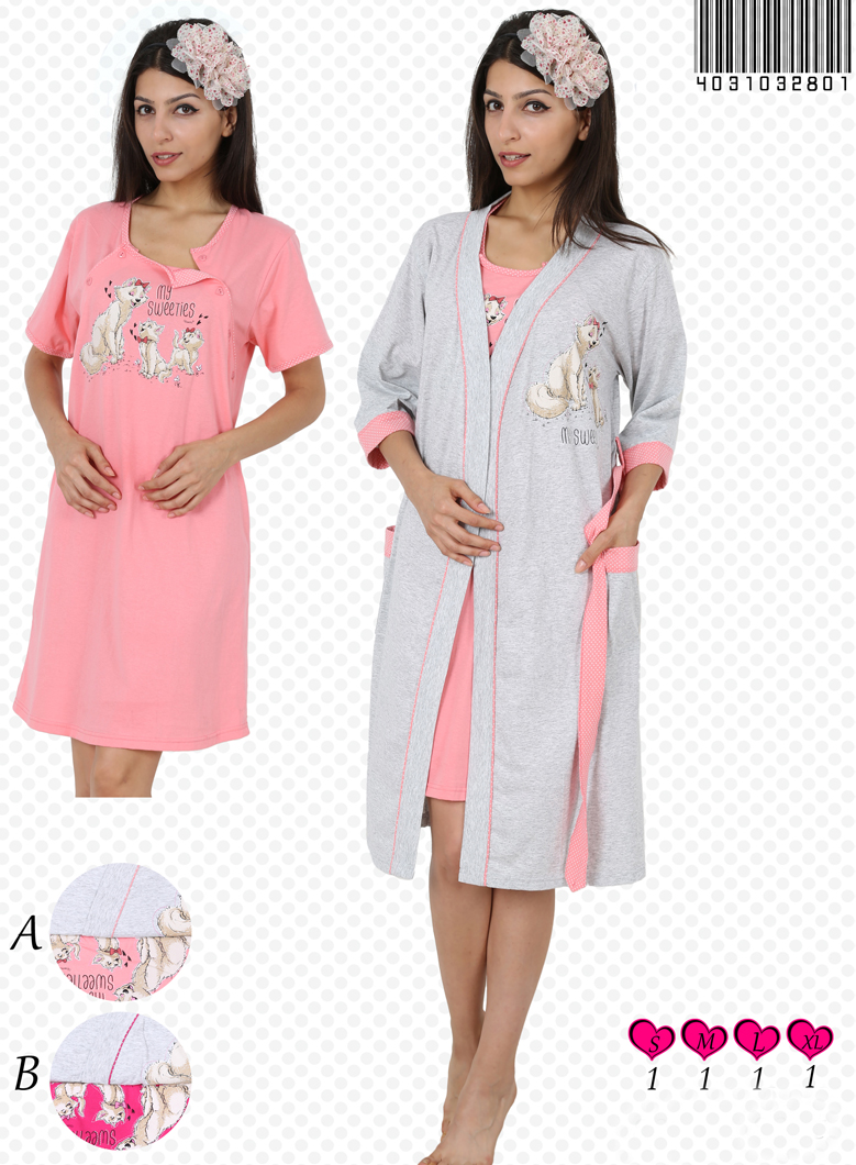 BAYAN SÜPREM TUNİĞİ KISA KOLLU SEKİZ DÜĞMELİ HAMİLE SABAHLİK TAKIMI - 4031032801